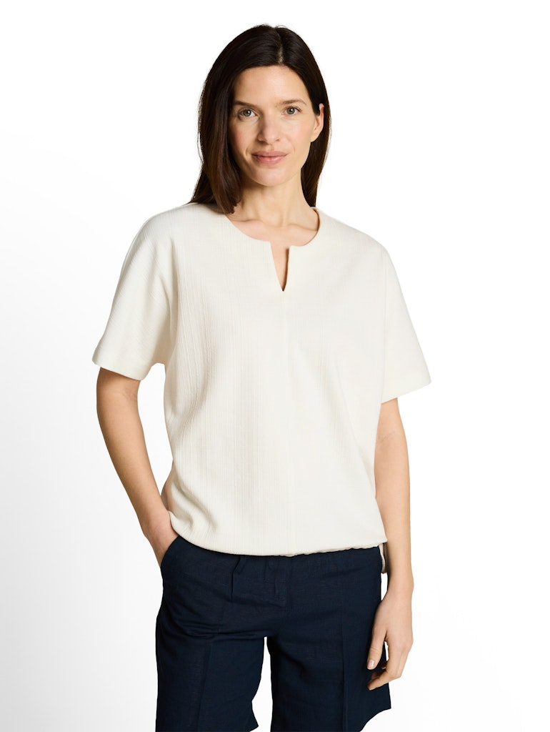 Sweatshirt mit Halbarm, V-Öffnung am Ausschnitt und Kordelzug am Saum. Aus einem strukturierten Jacquard-Stoff.
