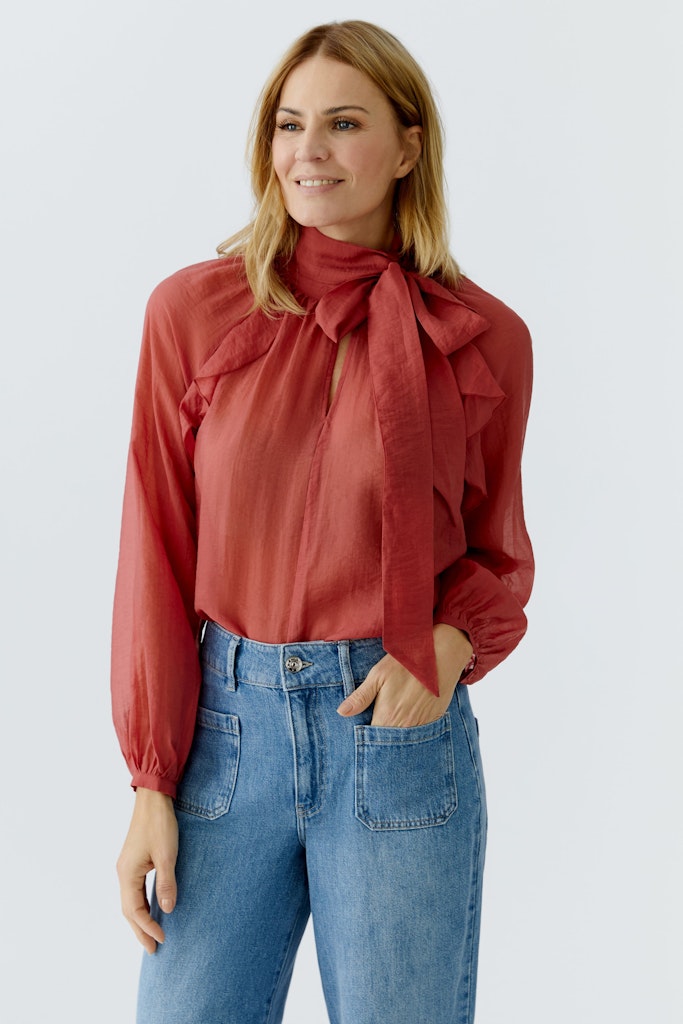 Rundhals mit kurzem Stehkragen, hinten mit zwei Knöpfchen zu verschließen, vorne mit Schlitz