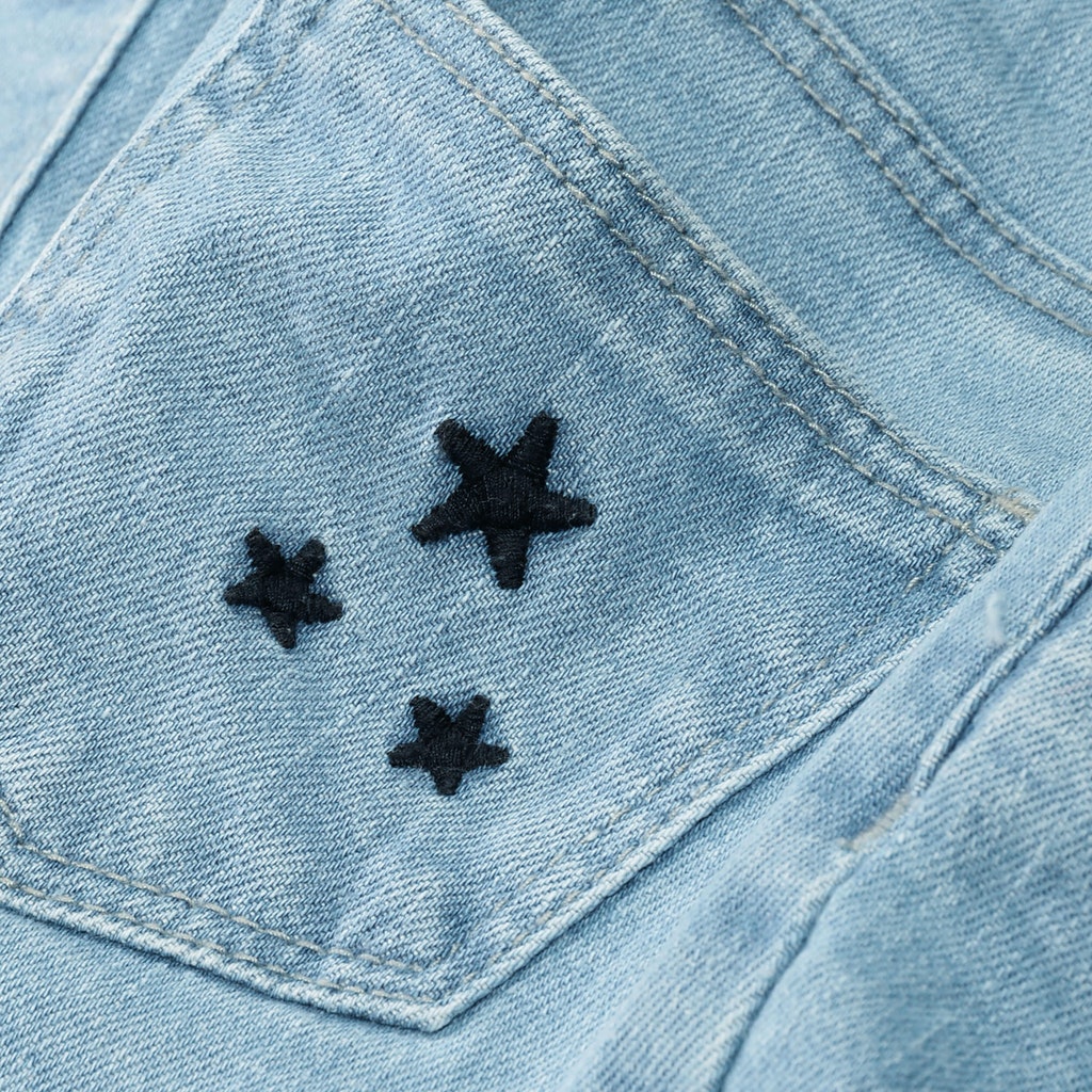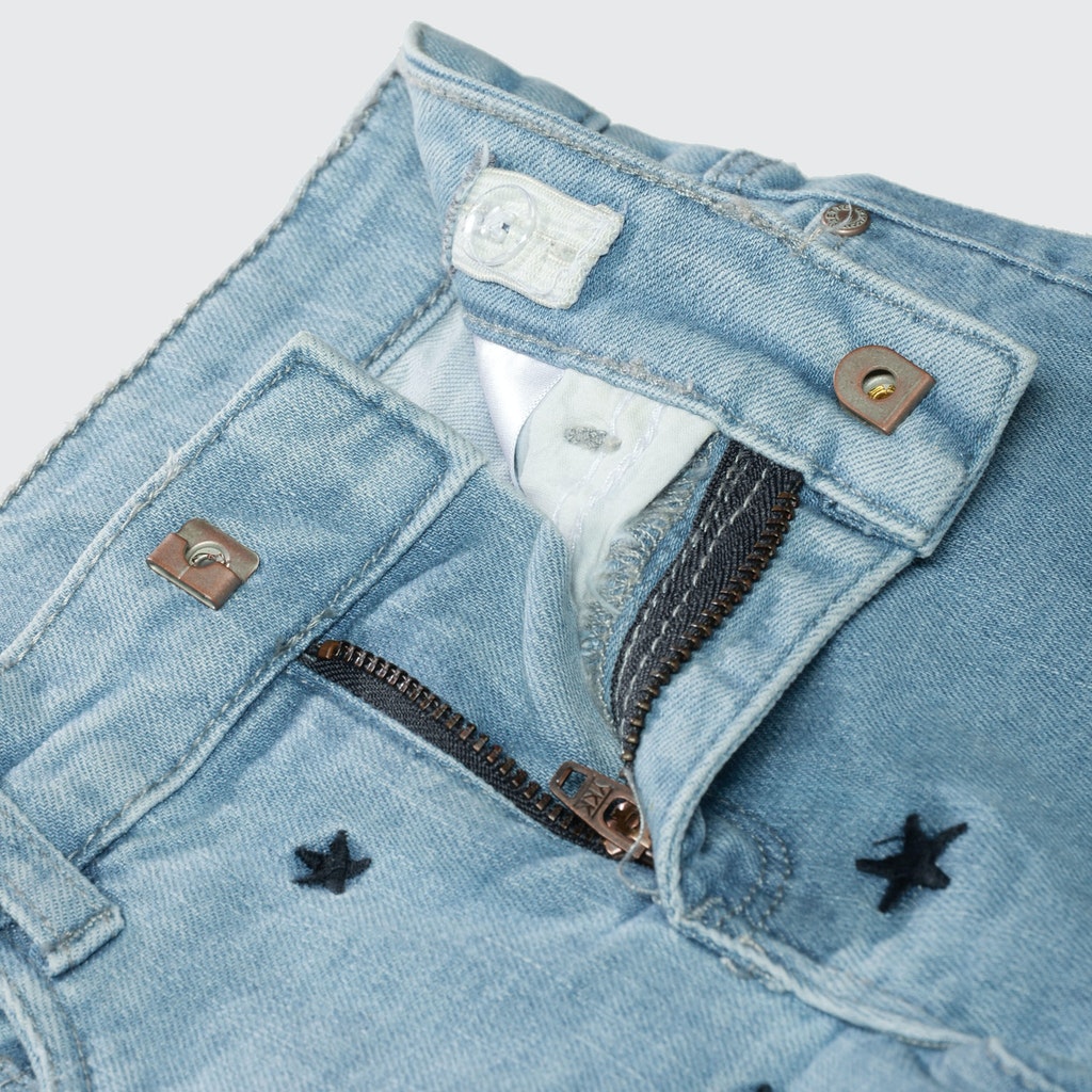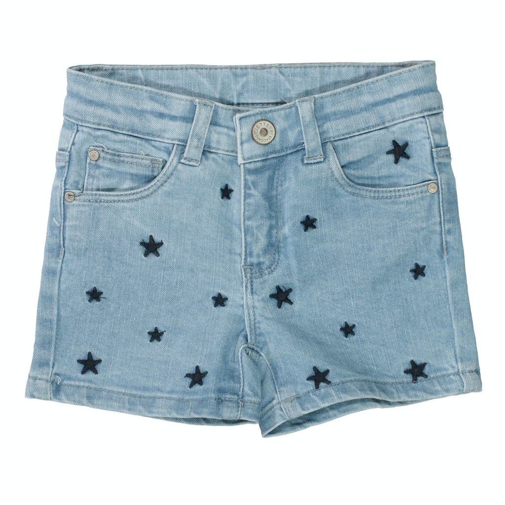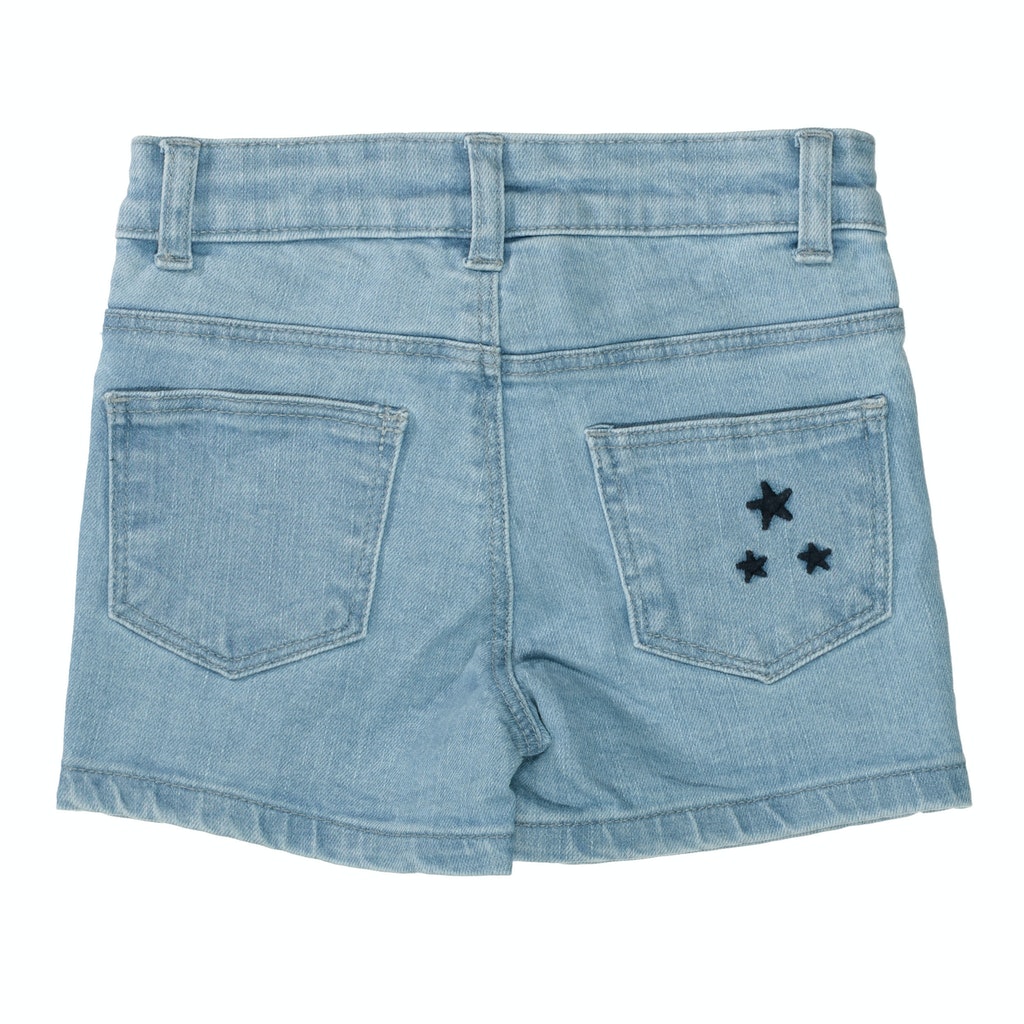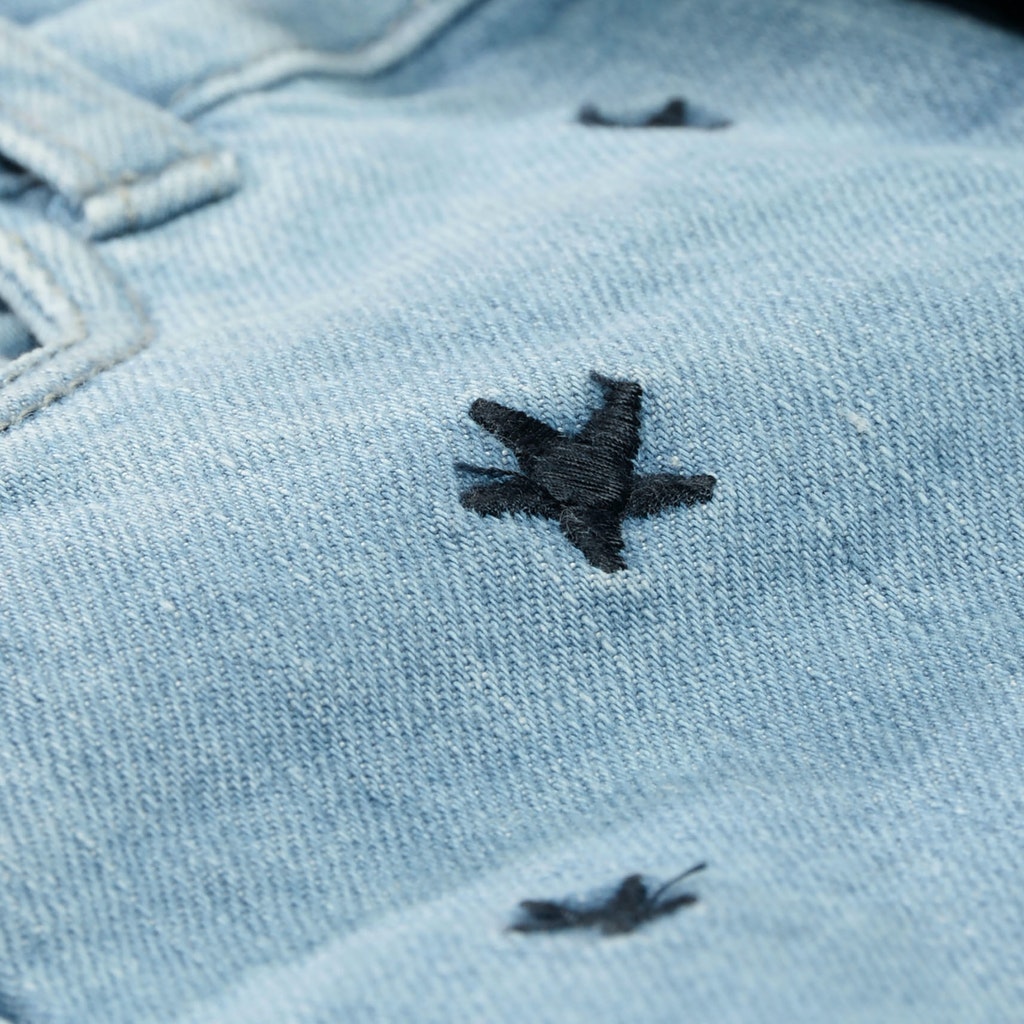 Ein echter Hingucker! Diese angesagte Jeans-Shorts mit verwaschener Optik und niedlichen Stickereien darf in keiner Sommer-Garderobe fehlen.