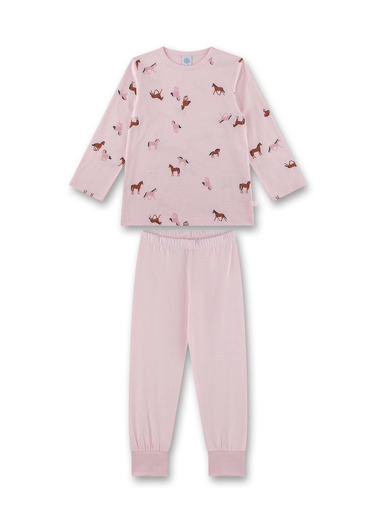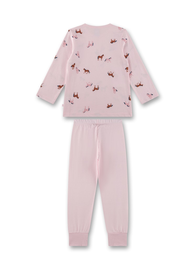 Hübscher Mädchen-Schlafanzug von Sanetta in einem dezenten Rosa mit einem trendigen Pferde-Allover auf dem Schlaf-Shirt.