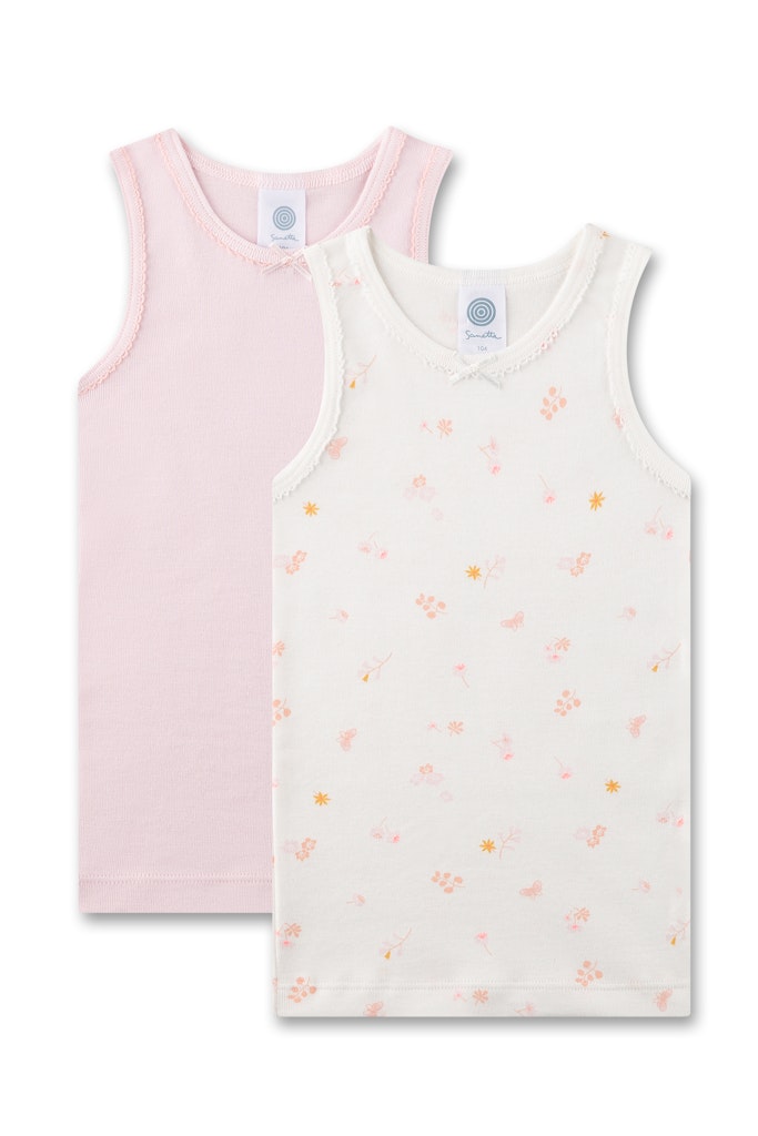 Gemütliche Unterhemden für Mädchen im vorteilhaften Doppelpack mit einem entzückenden floralen Alloverprint und in Rosa von Sanetta.
