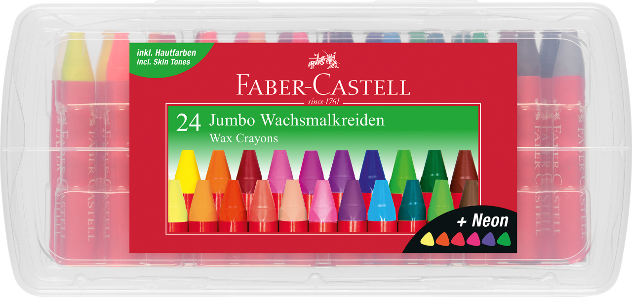 Faber-Castell 120034 Wachsmalkreiden Jumbo 24er Box, inklusive Neon-Farben und Hautfarbe