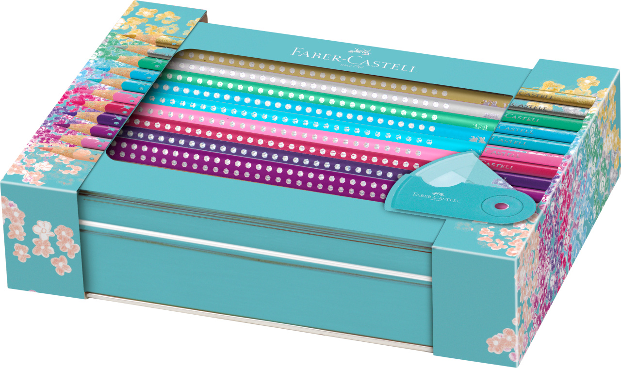 Faber-Castell 201641 Sparkle Buntstifte Geschenkset, Metalletui türkis, 21-teilig