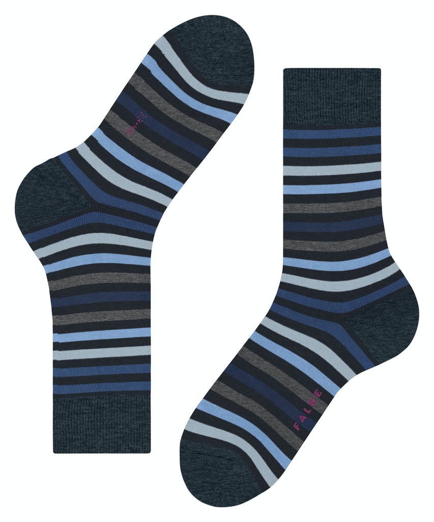 Die Kombination aus klimaregulierender Wolle und feiner gasierter, merzerisierter Baumwolle macht FALKE Tinted Stripe zum perfekten Alltagsbegleiter. Für die ansprechende Optik des Herrenstrumpfs sorgt das mehrfarbige Ringeldesign mit besonderem Garneffekt. Verstärkte Belastungszonen und die perfekte FALKE-Passform garantieren ein angenehmes Tragegefühl.