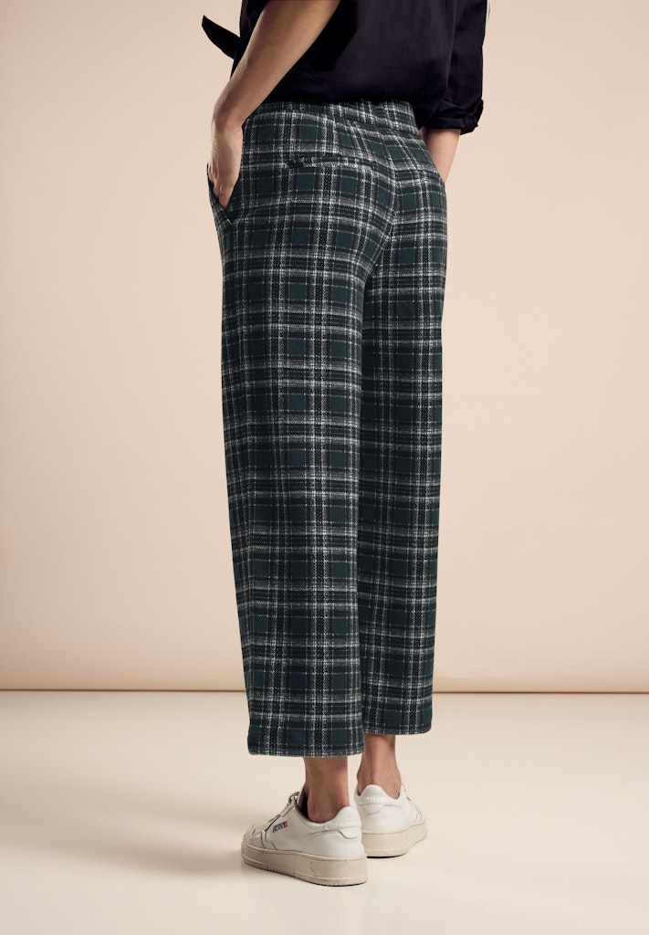 Die Hose im Casual Fit von Street One für Damen verfügt über High Waist und Straight Legs, was ihr eine elegante Silhouette verleiht. Die seitlichen Eingrifftaschen und die angenehme Jersey-Qualität machen sie weich und bequem. So ist die Jaquard-Hose ein stilvolles Basic für jeden Tag. Jaquard-Hose High Waist mit Straight Leg Seitliche Eingrifftaschen Angenehmer Jersey-Qualität Weich und bequem Material: 73% Polyester, 26% Viskose, 1% Elasthan