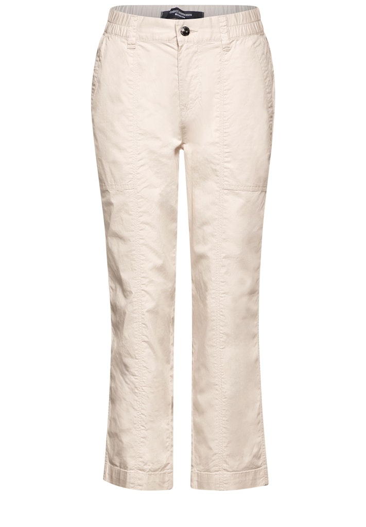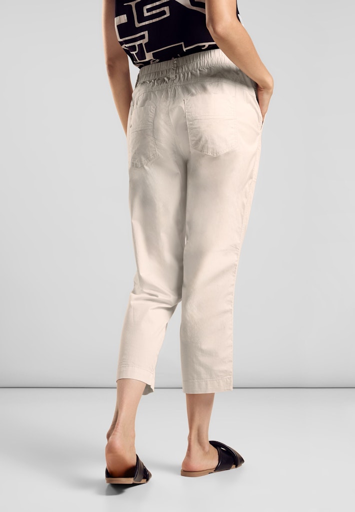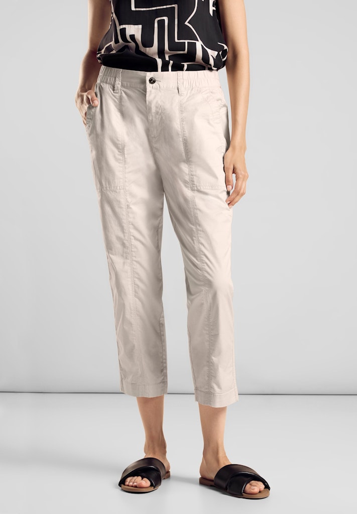 Diese Hose im Loose Fit von Street One für Damen im Style Bonny bietet einen gerafften Bund und eine Mid Waist mit Slim Legs, die eine schmeichelhafte Passform sicherstellt. Der Baumwollmix mit Stretchanteil sorgt für angenehmen Tragekomfort. Das 4-Pocket-Design rundet deinen neuen Look ab.