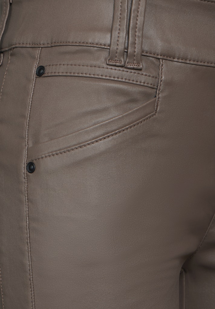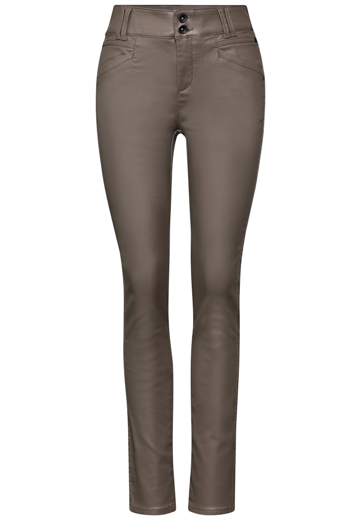 Die Hose Coating-Effekt im Slim Fit von Street One für Damen ist eine Hose in Leder-Optik mit Mid Waist und Slim Legs. Der Materialmix mit Stretchanteil und die seitlichen Taschen bieten dir hohen Tragekomfort. So ist die Hose im Style York perfekt für einen modischen Look. Hose in Leder-Optik Mid Waist und Slim Legs Slim Fit Seitliche Taschen Angenehmer Tragekomfort Material: 79% Viskose, 18% Nylon, 3% Elasthan
