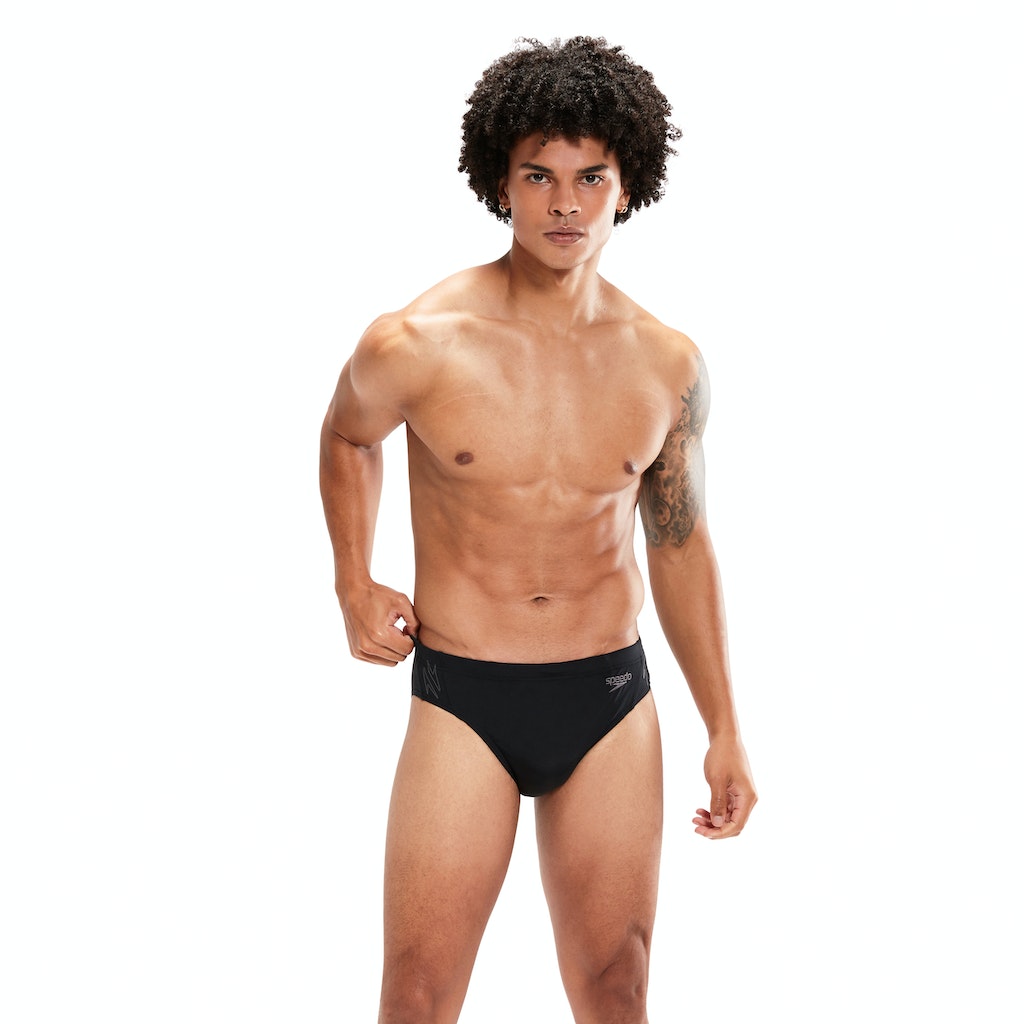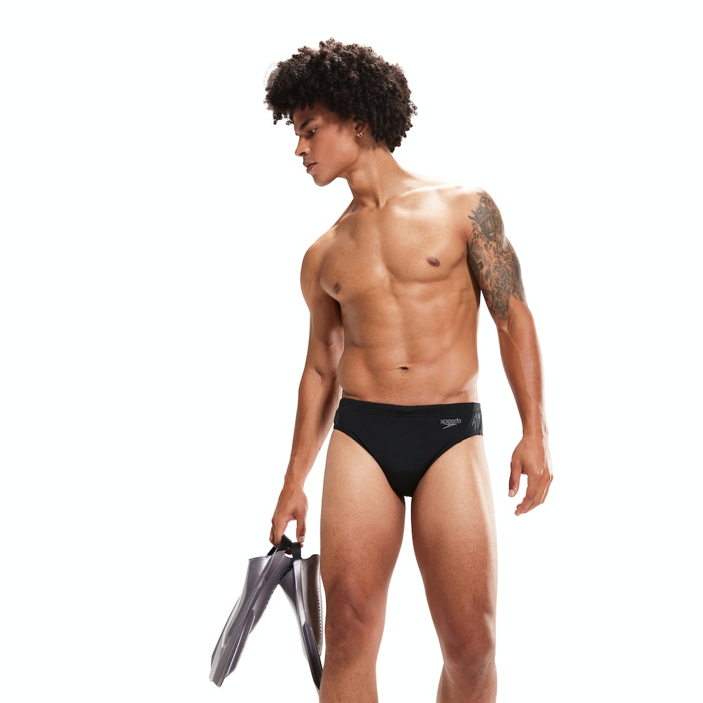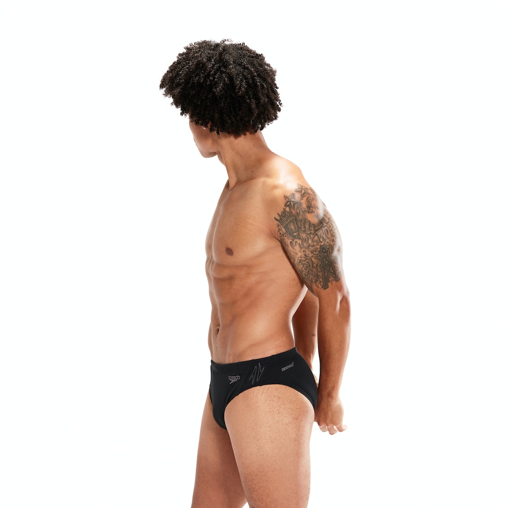 Klassisches Sportstyling, direkt aus dem Speedo-Archiv. Für eine Rückkehr zu unseren Bondi-Wurzeln, haben wir die Speedo-Designarchive für die neue Hyper Boom Splice 7cm Brief durchsucht, die eine Wiederbelebung unseres ikonischen Go-Faster-Boom-Logostreifens über die Hüfte zeigt. Schlank in Schwarz und kontrastierendem Grau, bietet der Slip große Bewegungsfreiheit und beinhaltet einen Kordelzug-Taille für eine maßgeschneiderte Passform. Er wurde entwickelt, um langlebig und besser für die Umwelt zu sein, und besteht aus unserem neuen ECO Endurance + -Gewebe, das zu 100% chlorbeständig und schnell trocknend ist und zu 50% aus recycelten Materialien besteht.