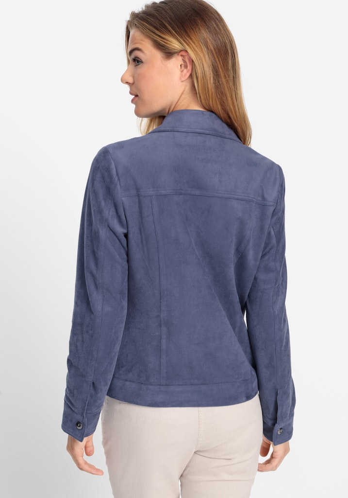 Diese Indoor-Jacke in Wildlederoptik vereint modernen Komfort mit zeitloser Eleganz. Der seitliche Reißverschluss verleiht der Jacke einen urbanen Touch und ermöglicht eine individuelle Anpassung des Looks. Die praktischen seitlichen Eingrifftaschen bieten ausreichend Platz für Ihre Essentials und setzen gleichzeitig stilvolle Akzente. Lange Ärmel mit Druckknöpfen runden das Design ab und sorgen für eine raffinierte Note. Gefertigt aus einem geschmeidigen Mix aus Polyester und Elastan, garantiert diese Jacke sowohl eine komfortable Passform als auch hohe Bewegungsfreiheit.