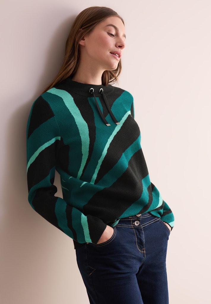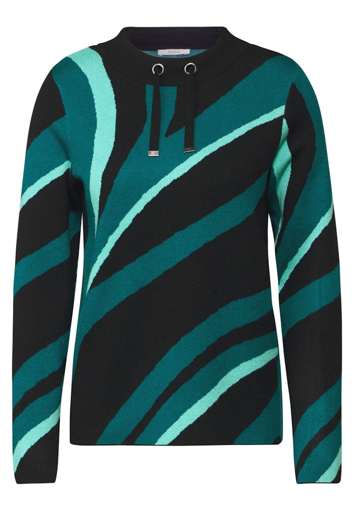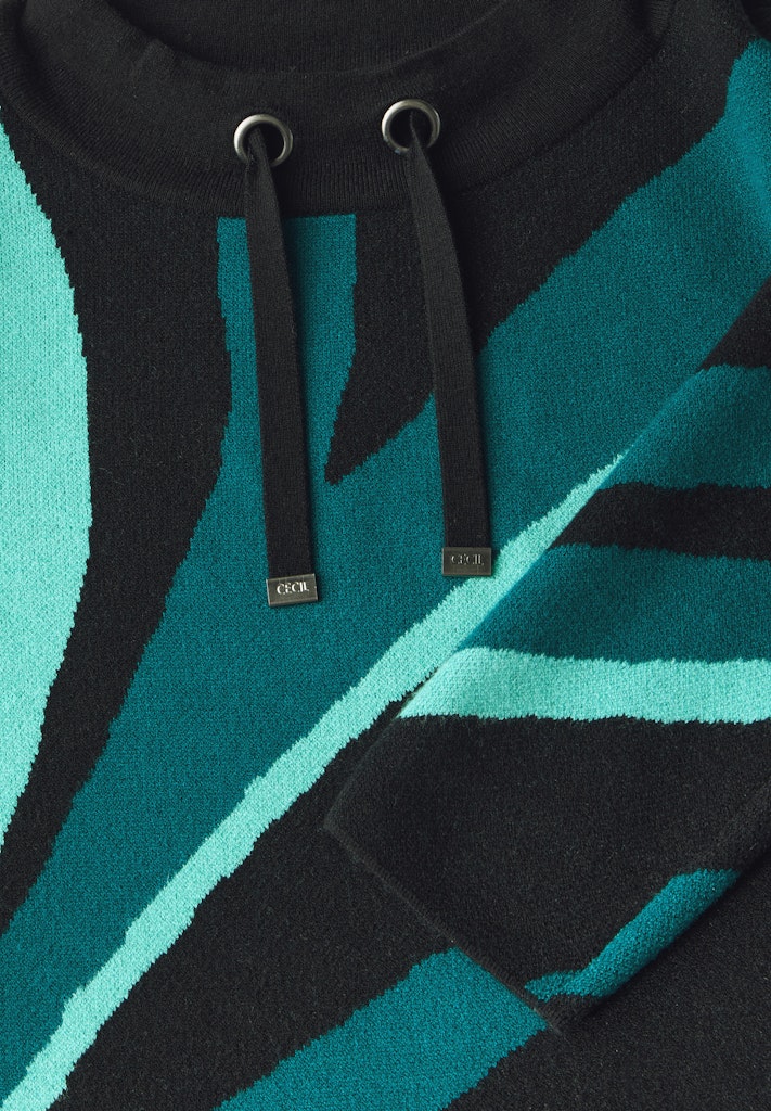 Der Jaquard-Pullover von CECIL überzeugt mit einem grafischen Muster und einem Turtleneck mit Tunnelzug. Der weiche Viskosemix und die langen Ärmel bieten ein angenehmes Tragegefühl. Ein modisches Statement für kühle Tage. Feinstrickpullover Turtleneck mit Tunnelzug Langarm Grafisches Muster Angenehmer Viskosemix Material: 50% Viskose, 28% Polyester, 22% Nylon