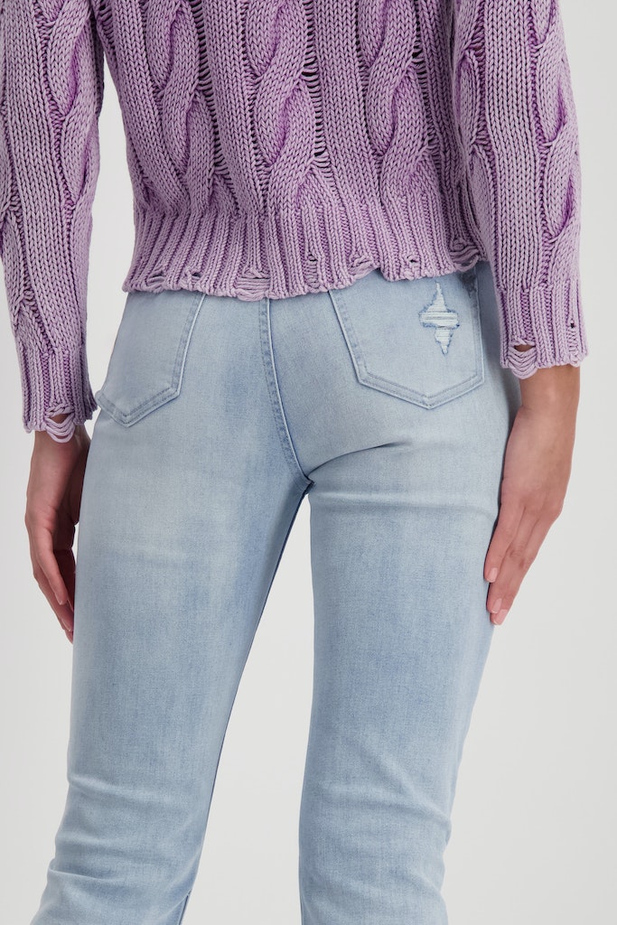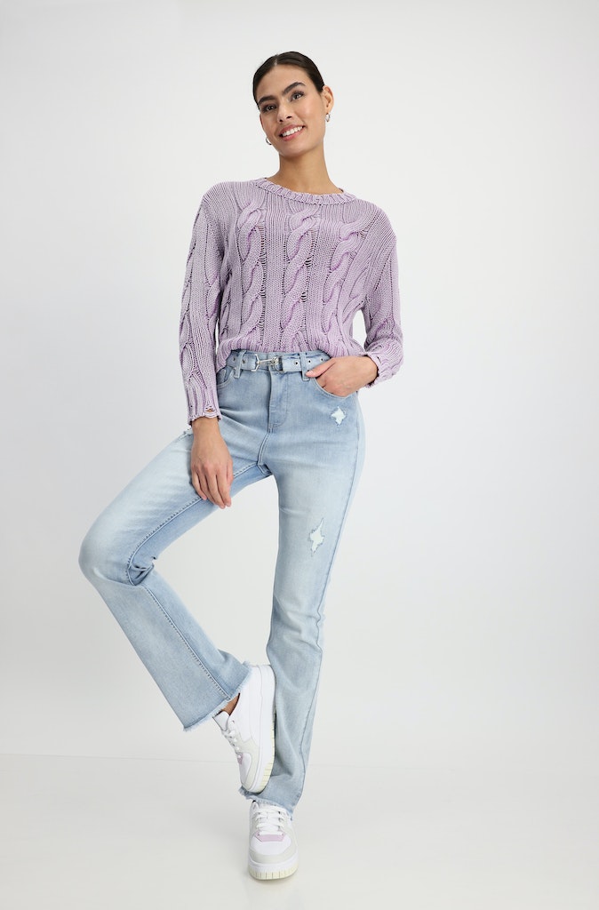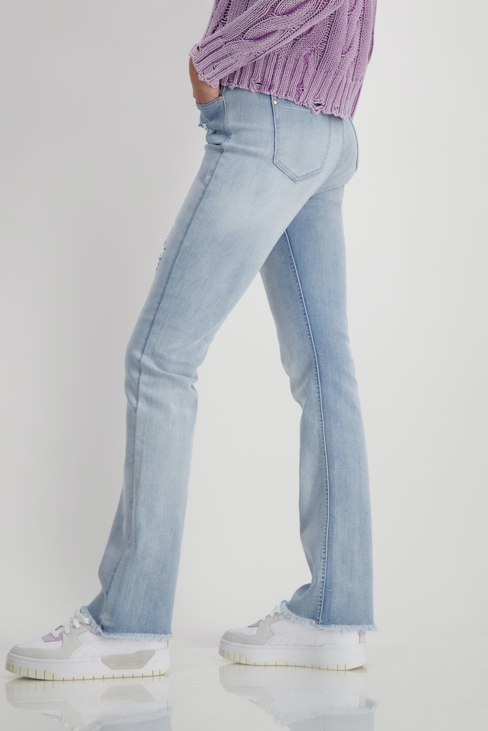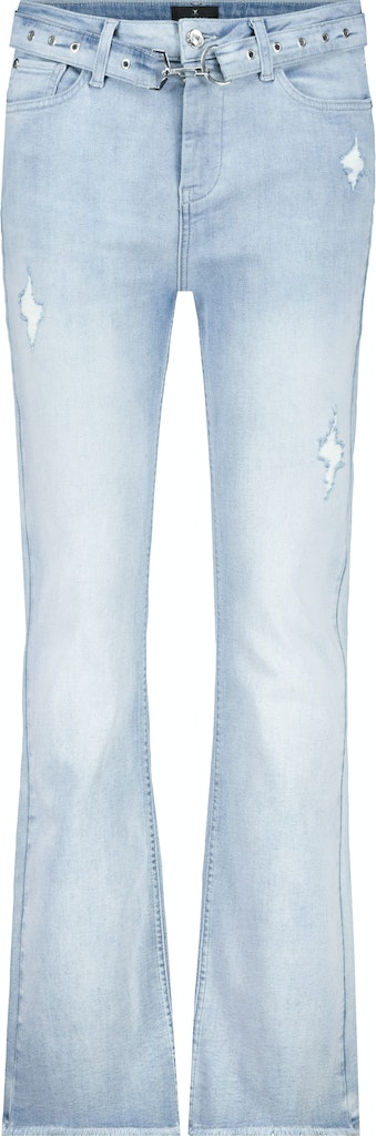 Bootcut Jeans mit Gürtel im Destroyed Look. Aus fester Baumwolle mit Fransen am Beinabschluss.