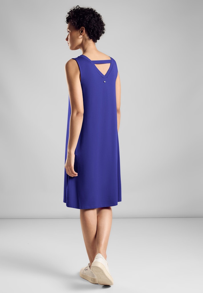 Das ärmellose Jersey Kleid von Street One für Damen ist ein perfektes Sommerkleid, das deine Garderobe bereichert. Mit seinem V-Ausschnitt und auf der Rückseite mit einem Banddetail bietet es einen femininen Look. Der bequeme Komfort und der Stretchanteil machen dieses Kleid zu einem idealen Begleiter für warme Tage.