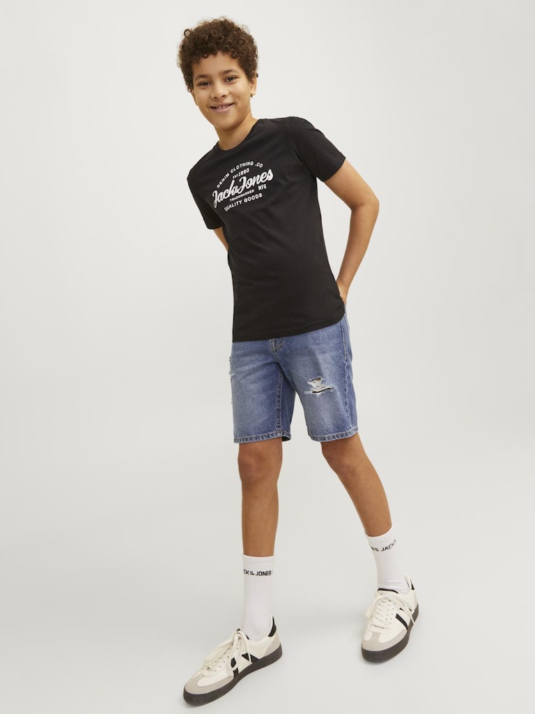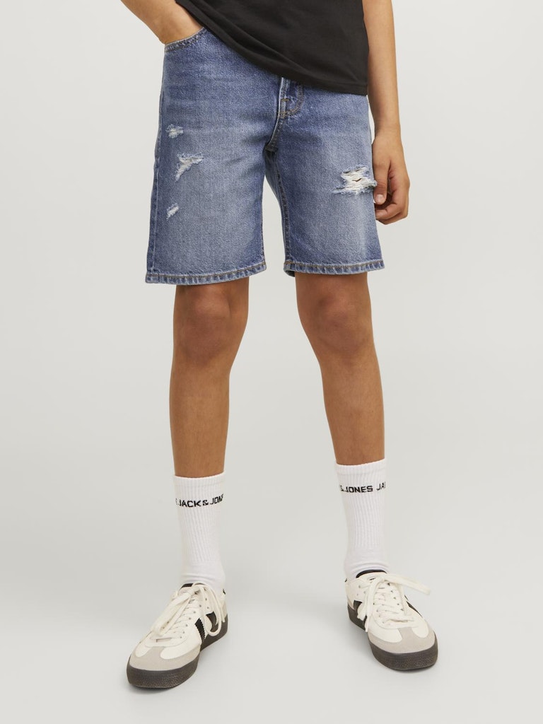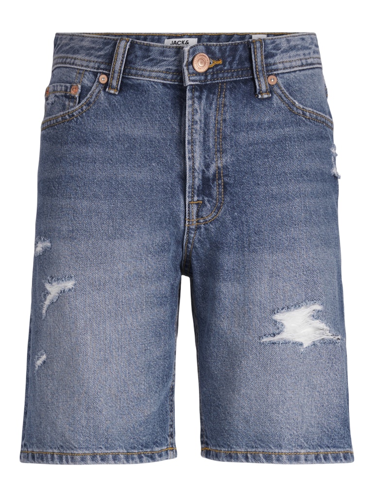 Original ist eine klassische Five-Pocket-Jeans: zeitlos, unkompliziert und so, wie man sie seit den Anfängen kennt - das macht sie zu etwas auf das man sich verlassen kann, wie es eine gute Jeans sein sollte.Denim ist ein robustes Köpergewebe aus gefärbten Kettfäden und ungefärbten Schussfäden.Entdecke die aufregende Welt von Jack and Jones Junior, in der Mode durch jugendliche Energie und lebhaften Charme zum Leben erweckt wird. Unsere Kollektionen bieten eine Mischung aus neuen, trendigen Designs, die Jungen im Alter von 3-16 Jahren ansprechen. Tauche in hochwertige und bequeme Styles ein, die speziell für junge Fashion-Liebhaber entwickelt wurden. Bei Jack and Jones Junior interpretieren wir Mode für Jungs im Alter von 3 bis 16 neu, indem wir coole Passformen und moderne Styles kombinieren und dabei immer wieder Elemente aus der Erwachsenenmode einfließen lassen.. - Produkttyp : Relaxed Fit Shorts - Verschluss : Reißverschluss - Taschen : Gesäßtaschen, Münztasche, Taschen vorn - Waschen : Große Risse bzw. Löcher mit Repairs - Körperform : Junior - Passform : Relaxed Fit mit hoher Taille, lockerem Bein und lockerer Beinöffnung