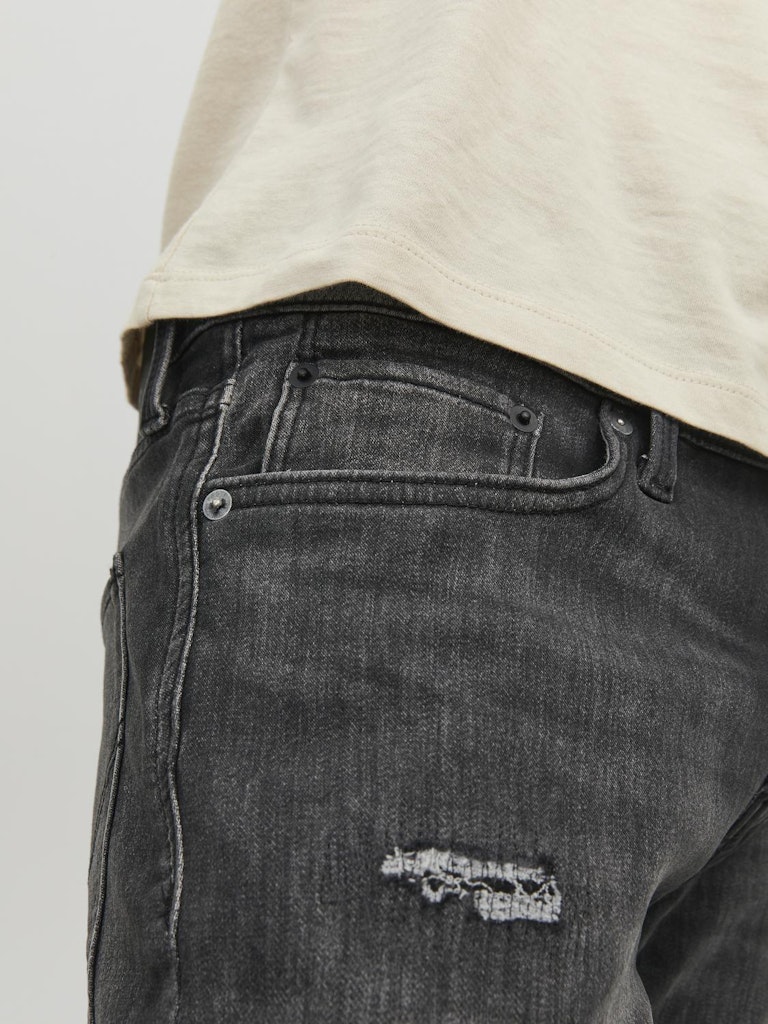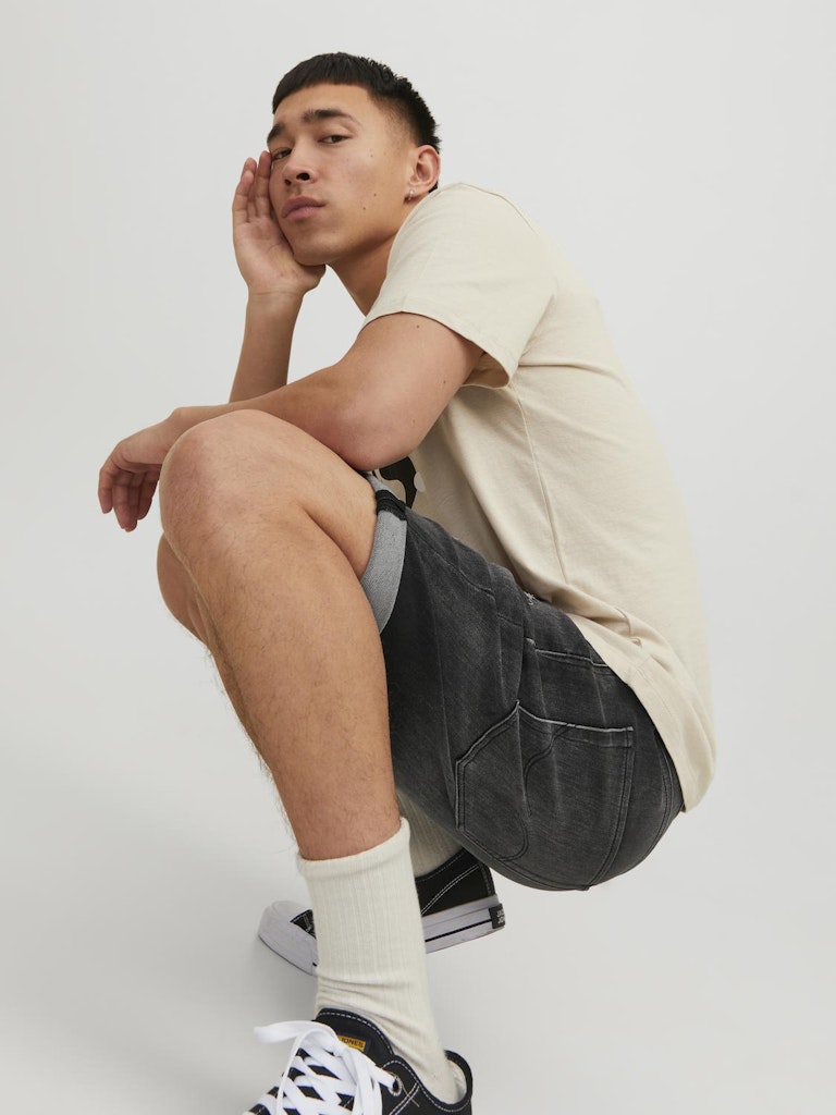 Aus der Jeans-Welt stammend ist der Five-Pocket Style eine Hose mit zwei Taschen hinten, zwei Taschen vorn und einer zusätzlichen Kleingeldtasche, die in die vordere rechte Tasche eingearbeitet ist. Normalerweise sind diese Hosen durch Metallnieten verstärkt, was die lässige und praktische Erscheinung der fünf Taschen unterstreicht.Indigo Knit vereint das Beste zweier Welten. Hole Dir den hervorragenden Tragekomfort Sweat-Stoff und den authentischen Indigo-Look von Denim. Probiere diese Indigo Knits an und erlebe ein intelligentes Jeans-Kleidungsstück von JACK & JONES.Unsere Performance-Jeans sind außerordentlich leicht, flexibel und wunderbar weich. Sie wurden für maximale Bewegungsfreiheit konzipiert und verbinden damit das Beste aus beiden Welten: Athleisure und echten Denim-Look. - Produkttyp : Jeans-Shorts - Verschluss : Knopfleiste - Taschen : Münztasche - Taille : Mittlere Taille - Länge/Größe : Midi - Waschen : Rip- und Repair-Details für einen Vintage-Look - Passform : Klassischer Regular Fit von der Taille bis zur Beinöffnung. Diese Hosenform ist perfekt für alle, die sich etwas mehr Platz am Bein wünschen.