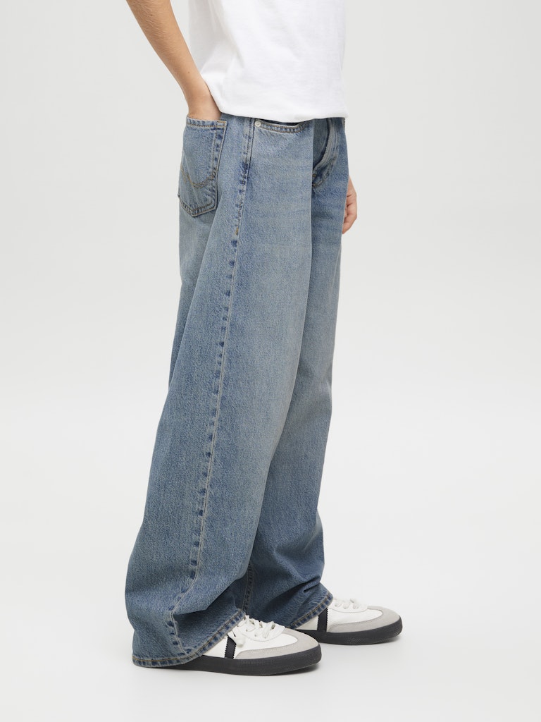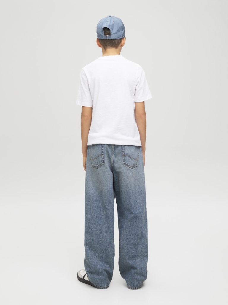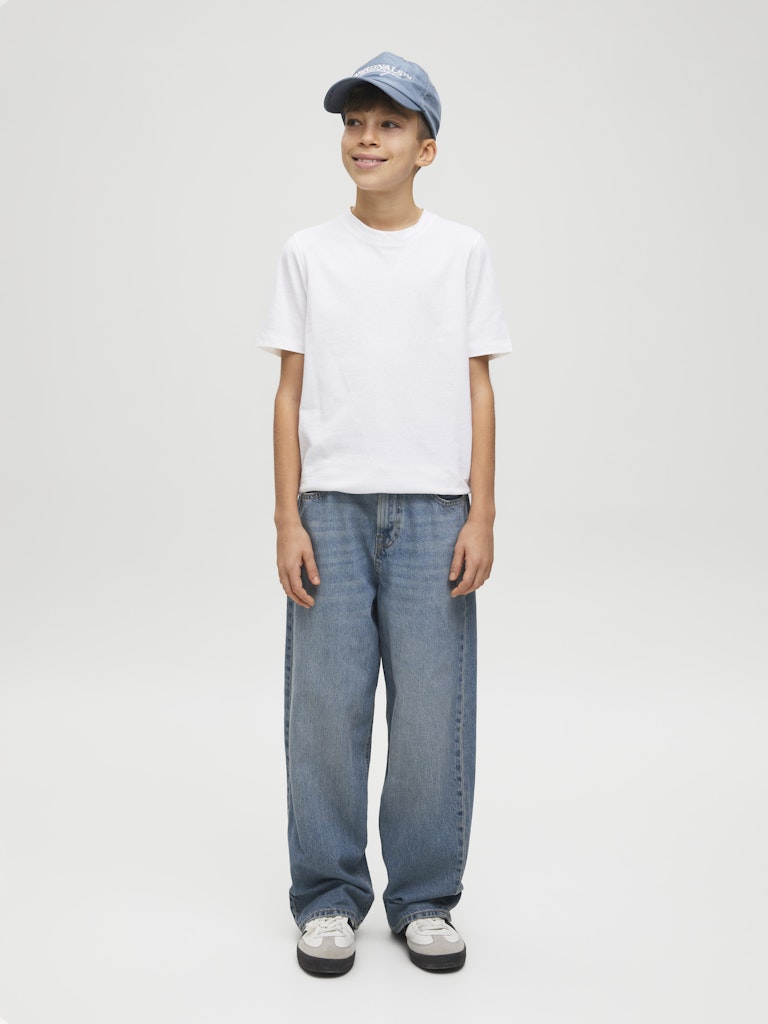 Original ist eine klassische Five-Pocket-Jeans: zeitlos, unkompliziert und so, wie man sie seit den Anfängen kennt - das macht sie zu etwas auf das man sich verlassen kann, wie es eine gute Jeans sein sollte.Denim ist ein robustes Köpergewebe aus gefärbten Kettfäden und ungefärbten Schussfäden.Entdecke die aufregende Welt von Jack and Jones Junior, in der Mode durch jugendliche Energie und lebhaften Charme zum Leben erweckt wird. Unsere Kollektionen bieten eine Mischung aus neuen, trendigen Designs, die Jungen im Alter von 3-16 Jahren ansprechen. Tauche in hochwertige und bequeme Styles ein, die speziell für junge Fashion-Liebhaber entwickelt wurden. Bei Jack and Jones Junior interpretieren wir Mode für Jungs im Alter von 3 bis 16 neu, indem wir coole Passformen und moderne Styles kombinieren und dabei immer wieder Elemente aus der Erwachsenenmode einfließen lassen.. - Produkttyp : Extra Baggy Fit Jeans - Verschluss : Reißverschluss - Taschen : Gesäßtaschen, Münztasche, Taschen vorn - Taille : Hohe Taille - Waschen : Stonewashed für einen Used-Look mit Faded-Effekten - Körperform : Junior - Passform : Baggy-Fit-Jeans mit hohem Bund und lockerem Oberschenkel, weitem Knie und lockere