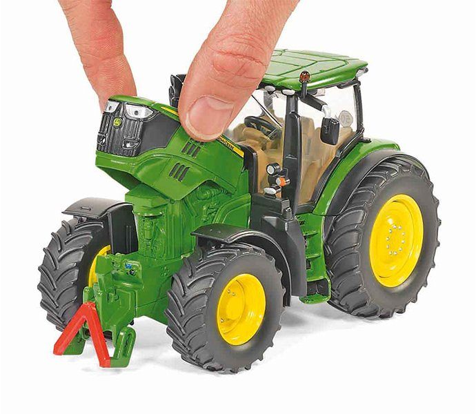 Der Hirsch fährt mit dem Typ 6210R in einer frisch und modern gestylten Version in das SIKU-Sortiment. Der Spielzeug-Traktor »John Deere 6210R« aus der siku Farmer Serie ist neben den bewährten Features wie Achsschenkellenkung und SIKU-Kupplungen, mit zwei Rundumleuchten am Kabinendach und klappbaren Spiegeln sowie dem StarFire-GPS-System ausgestattet. Die Kabine ist vollständig verglast und abnehmbar. Originalgetreue Felgen und Luftreifen mit landwirtschaftlichem Profil runden das Bild dieses hochwertigen Modells ab. Der detailverliebte Spielzeug-Traktor »John Deere 6210R« ist die ideale Wahl für alle kleinen und großen Fans von landwirtschaftlichen Maschinen und Sammlern von Modell-Traktoren.