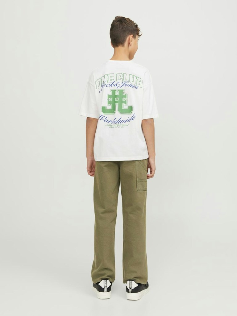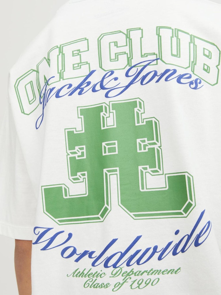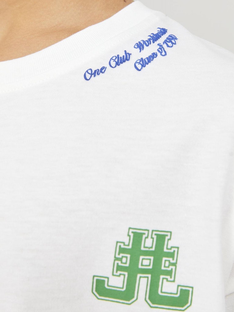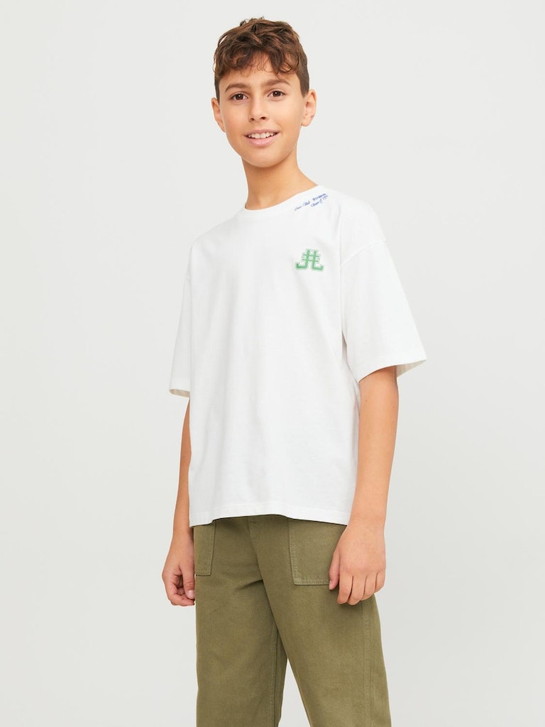 Nichts ist so unkompliziert wie ein T-Shirt. Es passt einfach zu allem in deinem Kleiderschrank.Gekämmtes Jerseygewebe ist dehnbar, fühlt sich weich an und ist perfekt für den Alltag.Entdecke die aufregende Welt von Jack and Jones Junior, in der Mode durch jugendliche Energie und lebhaften Charme zum Leben erweckt wird. Unsere Kollektionen bieten eine Mischung aus neuen, trendigen Designs, die Jungen im Alter von 3-16 Jahren ansprechen. Tauche in hochwertige und bequeme Styles ein, die speziell für junge Fashion-Liebhaber entwickelt wurden. Bei Jack and Jones Junior interpretieren wir Mode für Jungs im Alter von 3 bis 16 neu, indem wir coole Passformen und moderne Styles kombinieren und dabei immer wieder Elemente aus der Erwachsenenmode einfließen lassen.. - Produkttyp : T-shirt - Hals : Rundhals - Ärmel : Kurzarm - Print : Gummidruck für Weichheit - Körperform : Mini - Passform : Volumiger Fit
