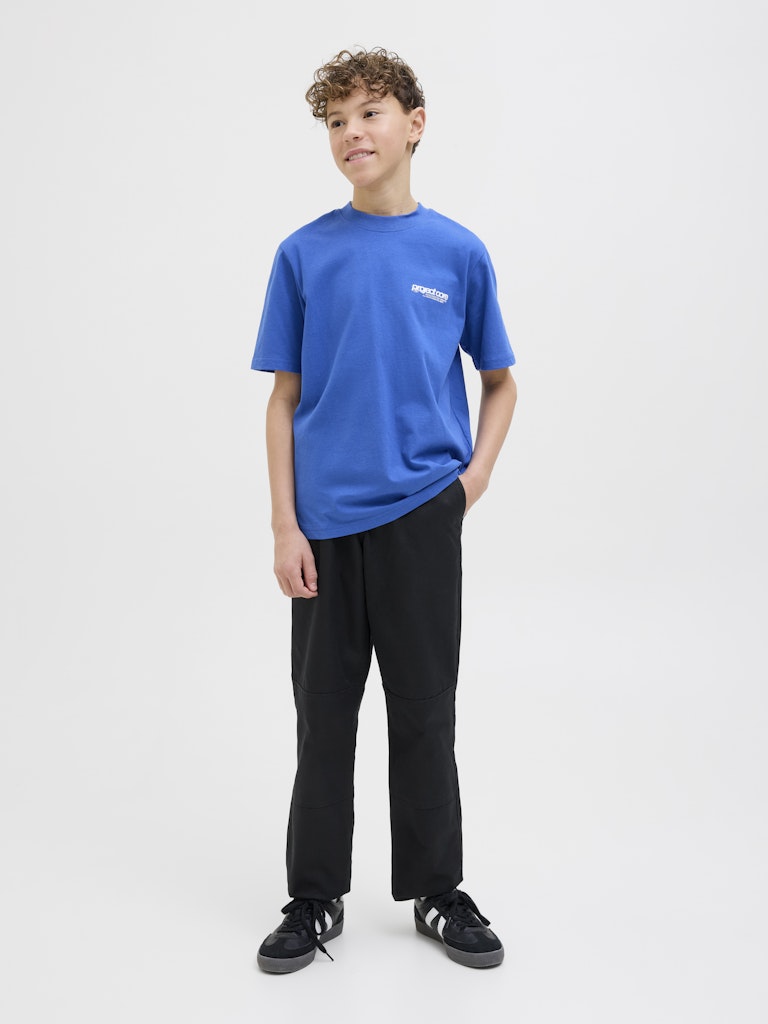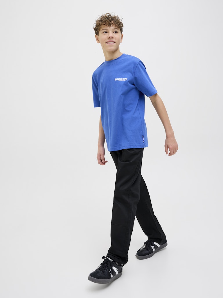 Werte deinen Look mit einer Chinohose auf. Dieses zeitlose Must-have ist die sportlich elegante Alternative zu Jeans.Webstoff ist fest und robust und dehnt sich nicht wie gestrickte Stoffe.Entdecke die aufregende Welt von Jack and Jones Junior, in der Mode durch jugendliche Energie und lebhaften Charme zum Leben erweckt wird. Unsere Kollektionen bieten eine Mischung aus neuen, trendigen Designs, die Jungen im Alter von 3-16 Jahren ansprechen. Tauche in hochwertige und bequeme Styles ein, die speziell für junge Fashion-Liebhaber entwickelt wurden. Bei Jack and Jones Junior interpretieren wir Mode für Jungs im Alter von 3 bis 16 neu, indem wir coole Passformen und moderne Styles kombinieren und dabei immer wieder Elemente aus der Erwachsenenmode einfließen lassen.. - Produkttyp : Hosen mit weitem Bein - Verschluss : Reißverschluss - Taschen : Taschen vorn, Gesäßtaschen - Taille : Mid Rise - Beindetails : Säume zum Umschlagen - Körperform : Junior - Passform : Wide Fit mit hoher Taille, weitem Bein und weiter Beinöffnung