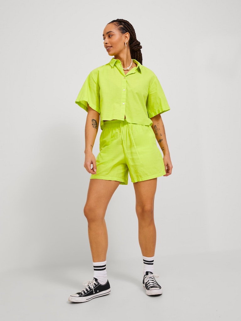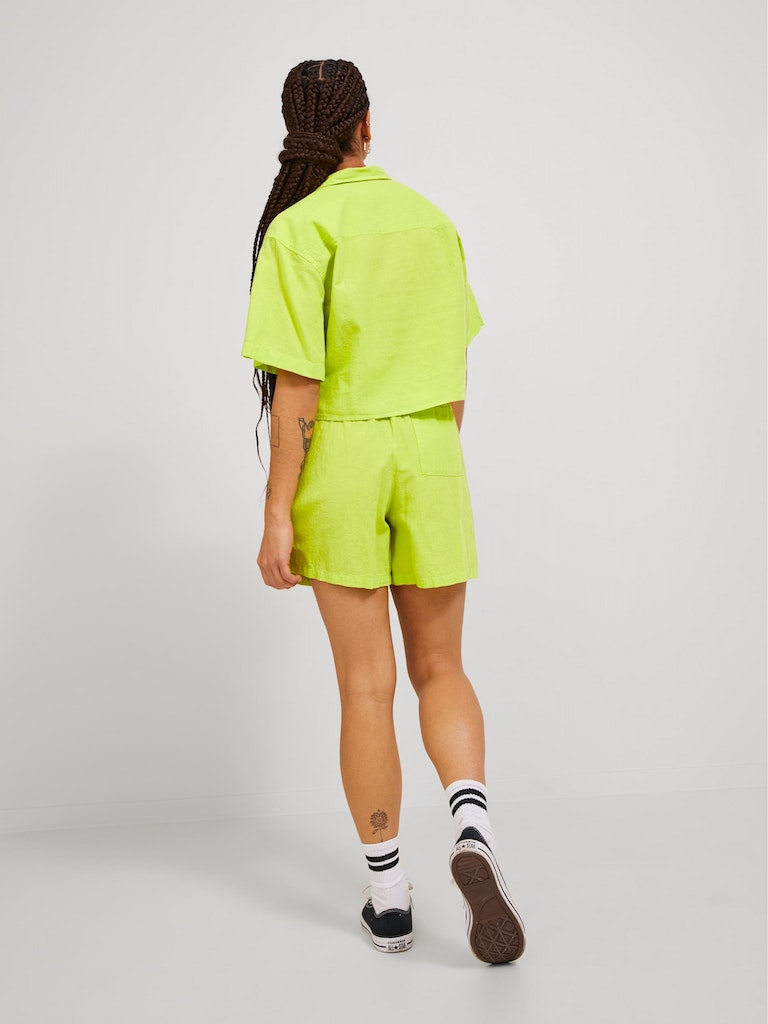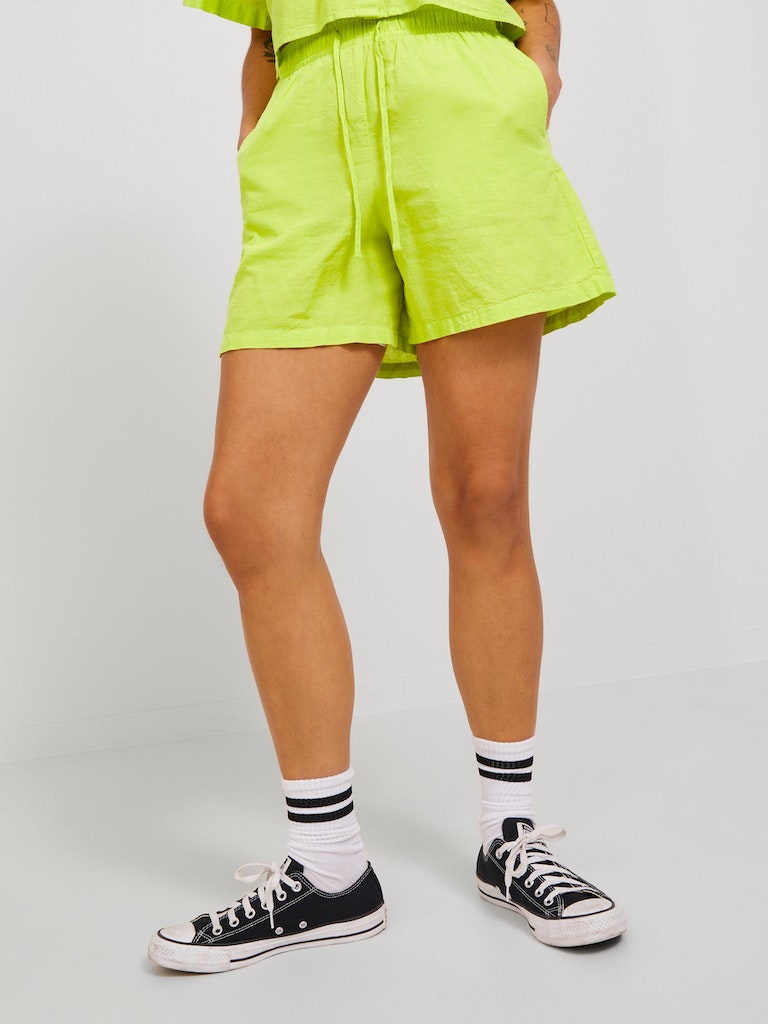 - Detailart: Freizeitshorts- Länge/Größe: Reicht bis zur Mitte des Oberschenkels- Waist/Rise: High Waist- PASSFORM: Relaxed Fit- Weitere Details: Elastischer Bund mit Kordelzug- Anlass/Styling: Erkennbar an ihrem Kordelzug und dem elastischen Bund, sind Joggershorts in allen Stoffen und Passformen einfach superbequem- Das Model trägt Größe S und ist 176 cm groß- JJXX