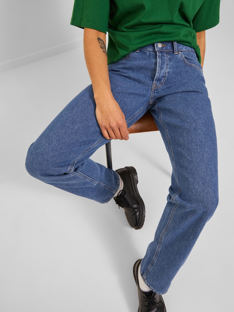 - Detailart : Straight Fit Jeans- Stoff : Fester Stoff ohne Stretch- Waist/Rise : Low Waist- Wash/Finish : Stonewashed für einen coolen Used-Look- Verschluss/Hosenschlitz : Hosenschlitz mit Knopfverschluss- Tasche andere : Klassischer 5-Pocket-Style mit zwei Gesäßtaschen, zwei Fronttaschen und einer Münztasche- Passform : Straight Fit