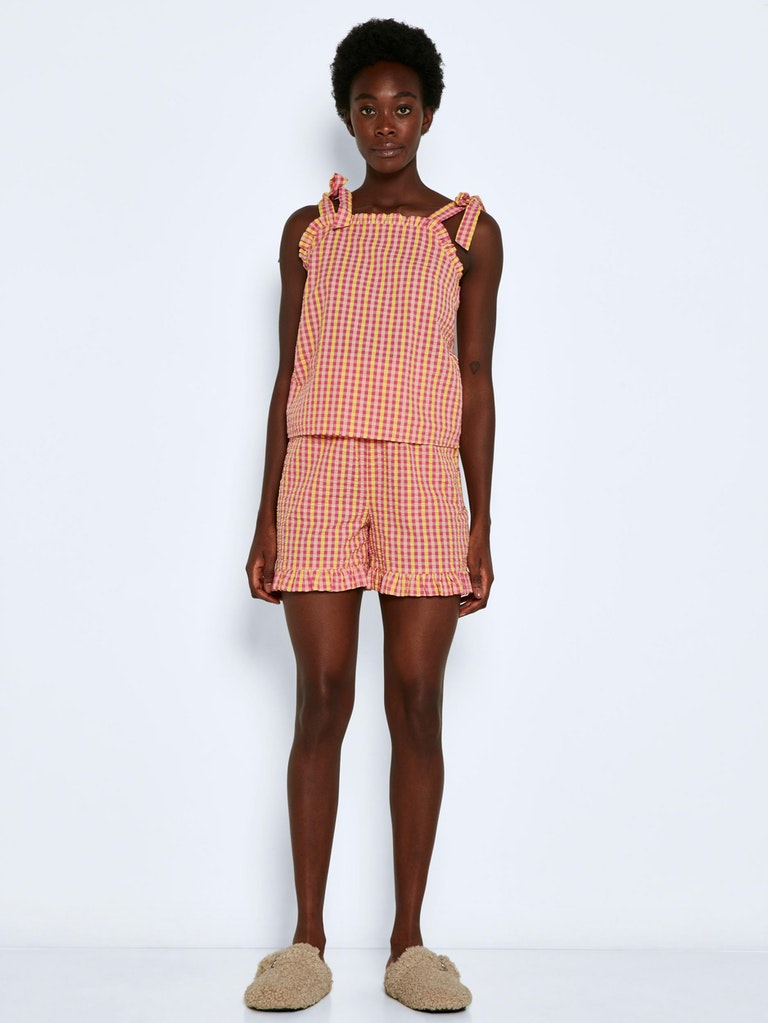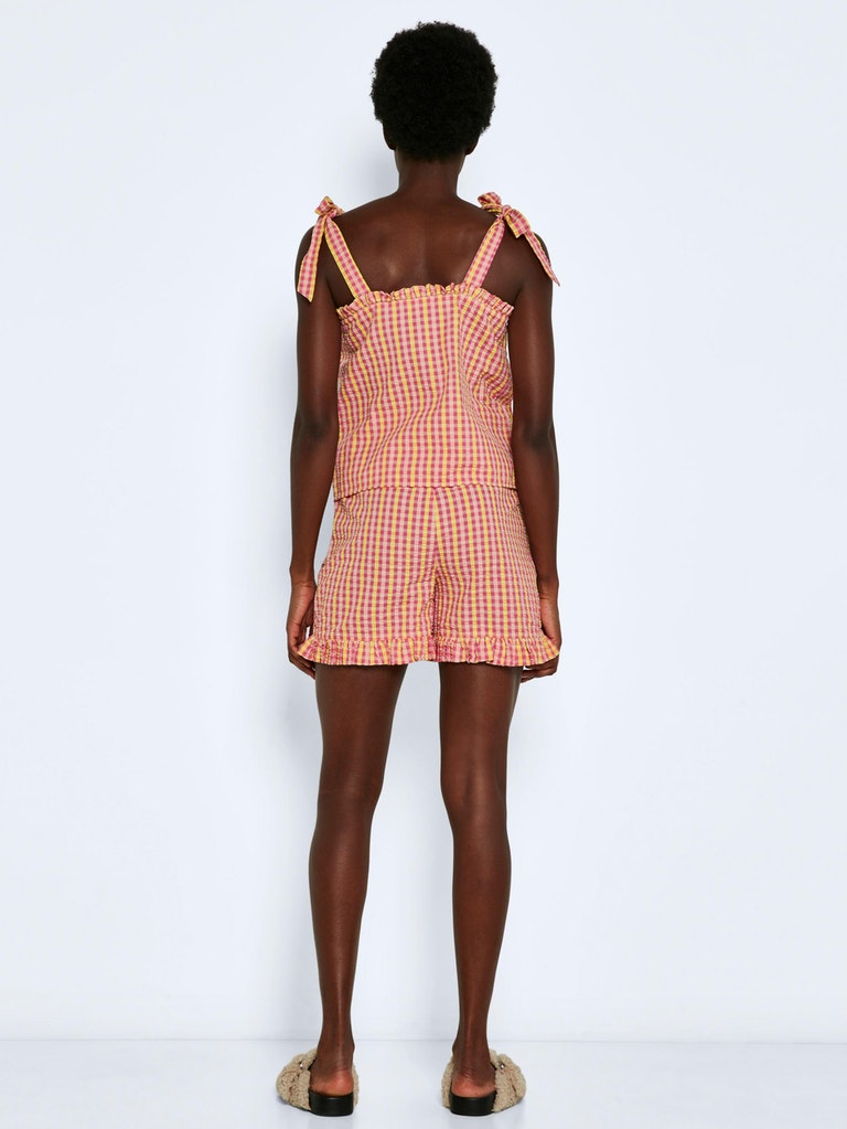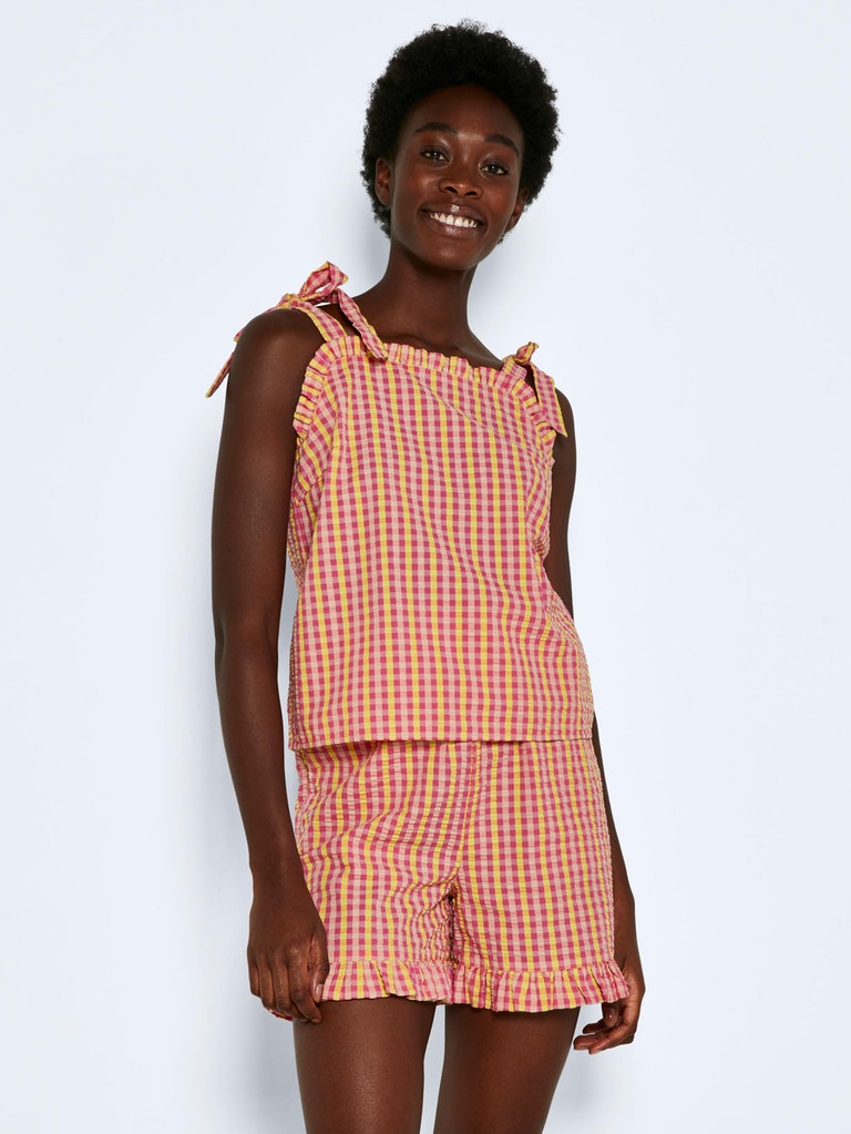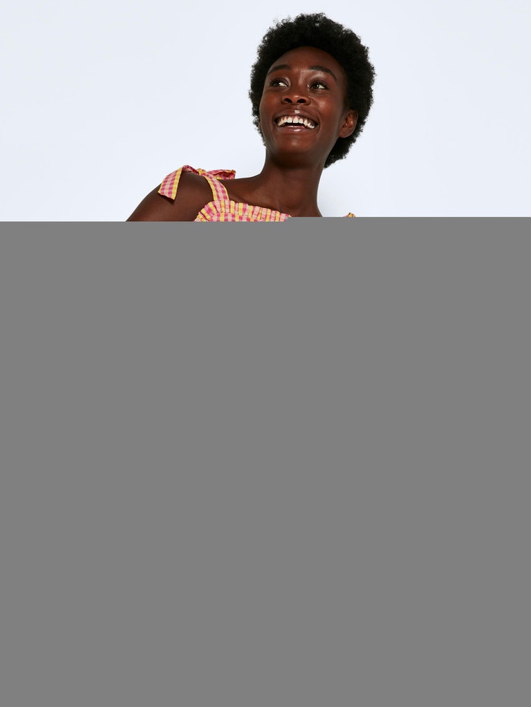 - Kariertes Oberteil- Halsausschnitt mit Rüschen- Verstellbare Träger- Karreeausschnitt- Baumwollgemisch- Relaxed Fit