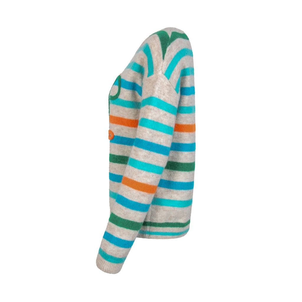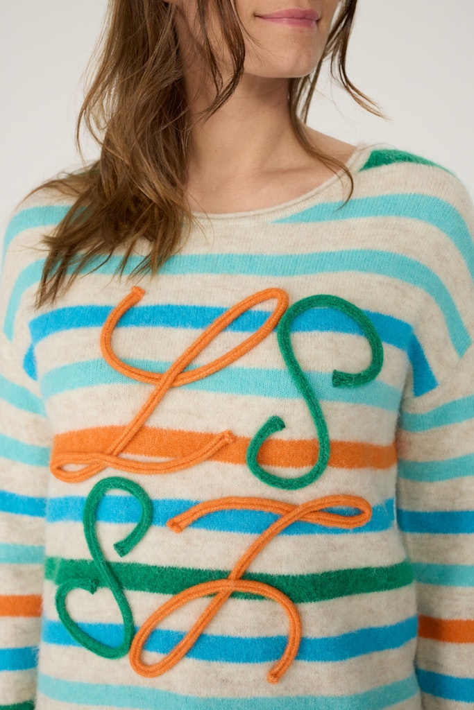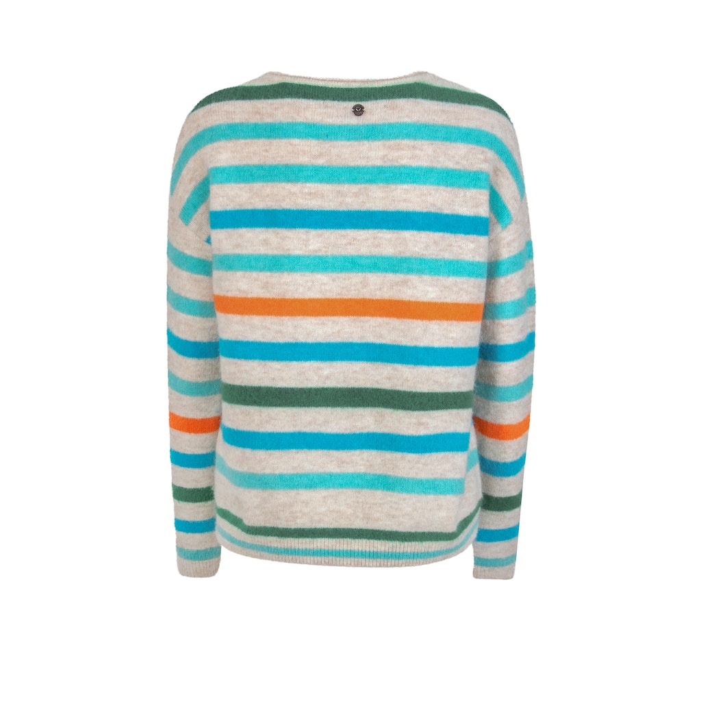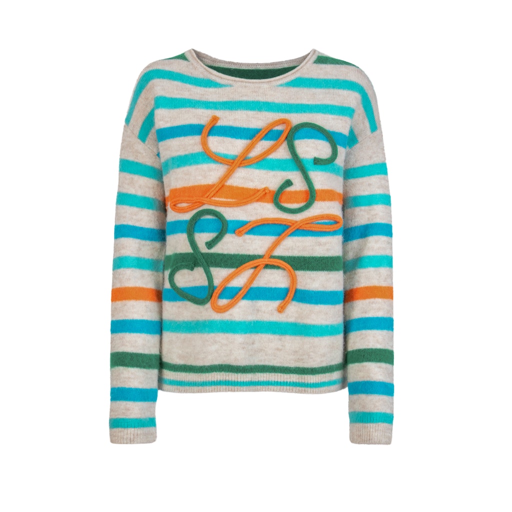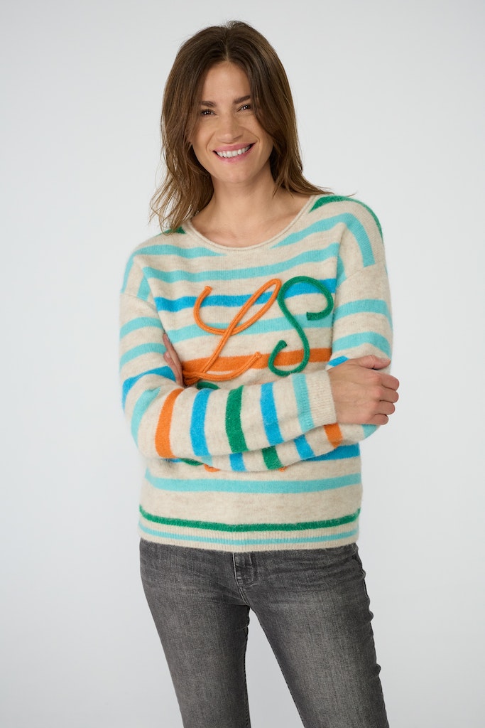 Pullover RH leicht überschnittene Schulter mit Streifen + Frontmotiv