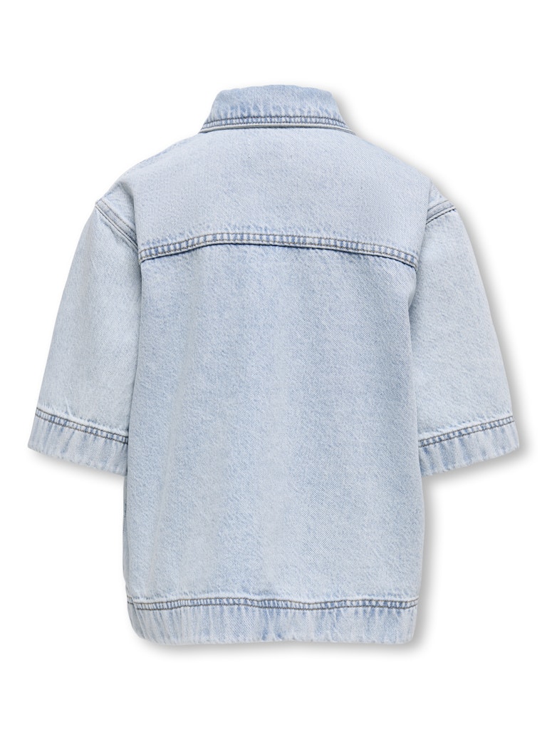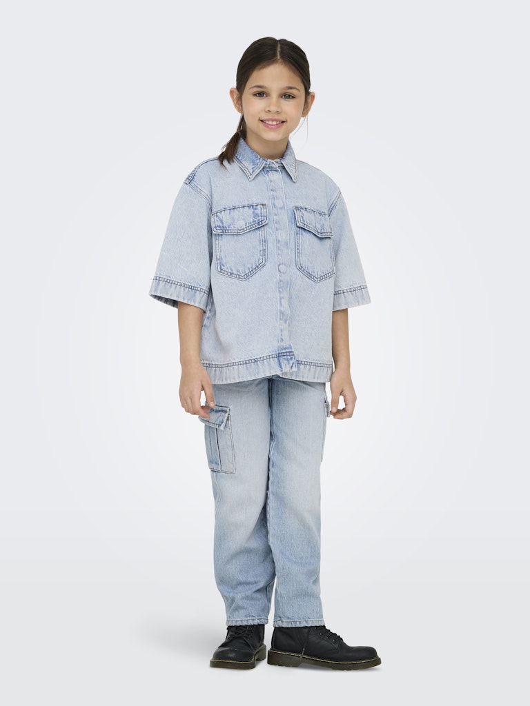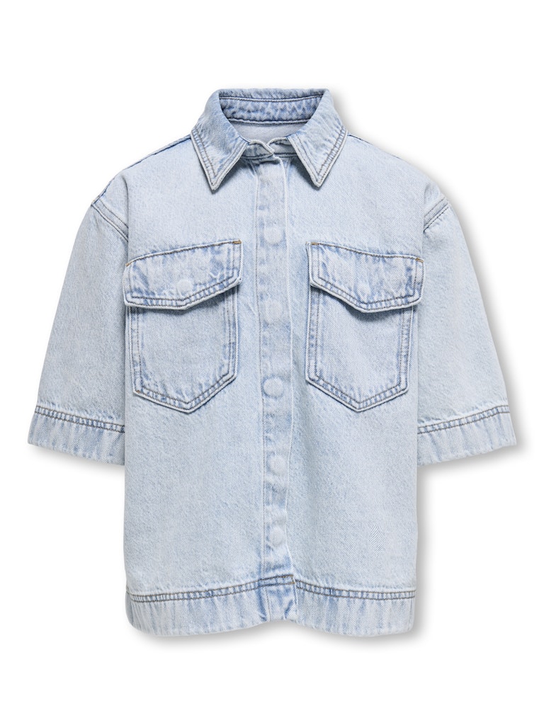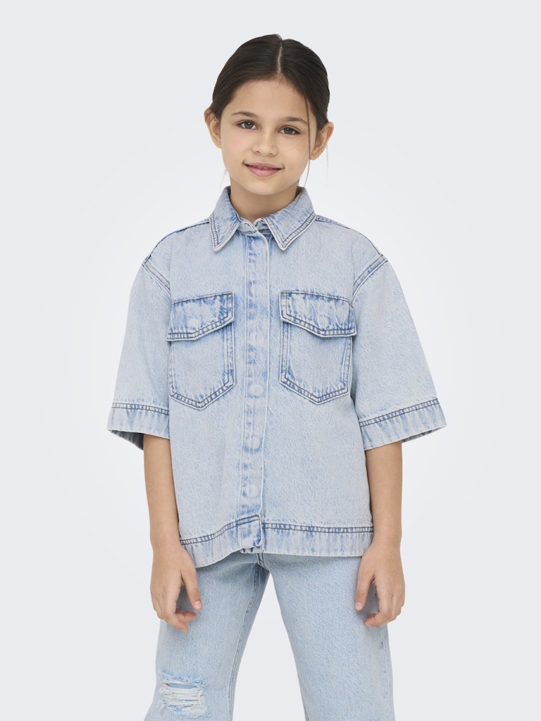 Kombiniere deine Lieblingshose oder deinen Lieblingsrock mit einer neuen Jeansbluse zu einem zeitlosen Look oder experimentiere mit Double Denim für ein stylishes und cooles Outfit.Denim ist ein ikonisches Material, das in verschiedenen Ausführungen erhältlich ist und sich meist durch seine Stärke und seine diagonal gerippte Oberfläche auszeichnet.KIDS ONLY ist ein Modelabel für coole Kinder. Entdecke eine Welt, die voller Must-haves aus Denim, cooler Streetwear und stylisher Favoriten steckt. - Produkttyp : Jeanshemd - Hals : Hemdkragen - Ärmel : Kurzarm - Verschluss : Knopfleiste - Taschen : Brusttaschen - Passform : Locker geschnitten