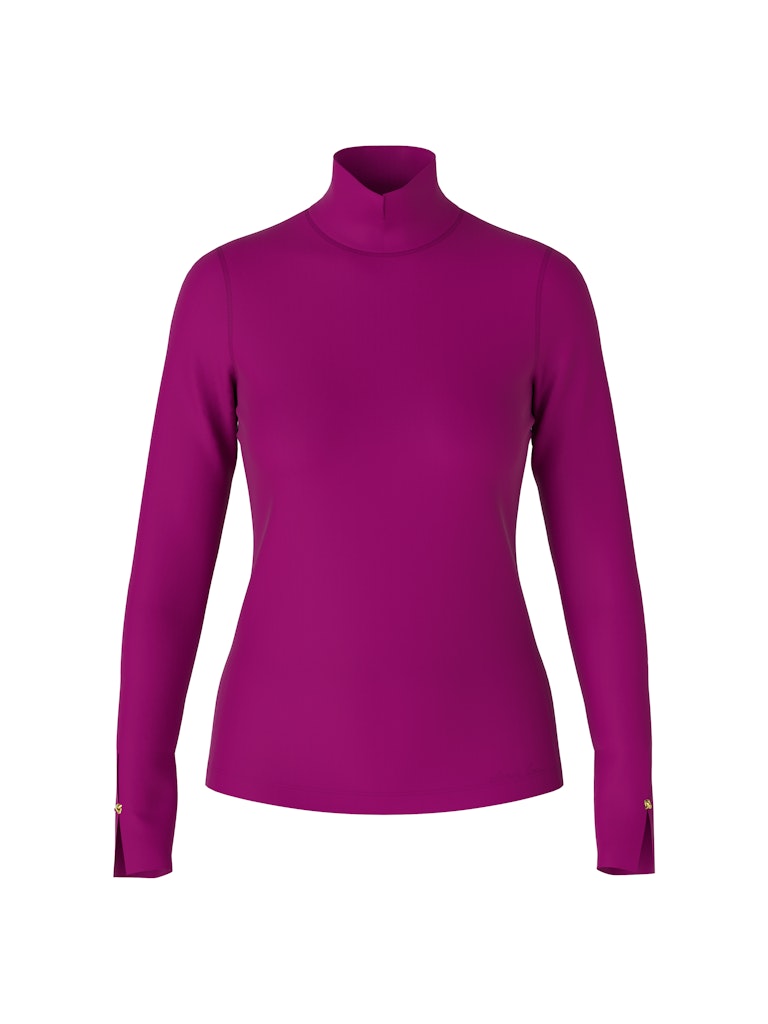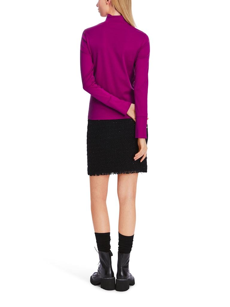 Langärmliges T-Shirt|Softes T-Shirt aus Baumwolle mit Elasthan. Dieses T-Shirt ist das ideale Basic für kühlere Tage. Es kommt mit Rollkragen und langem Arm. Blickfang ist der schmückende Knopf am geschlitzten Ärmelbund. Die taillierte Silhouette betont die Figur.|Taillierte Silhouette|Schmuckknopf|Made in Europe|Softer Griff|Das Model ist 179 cm groß und trägt N3/38.