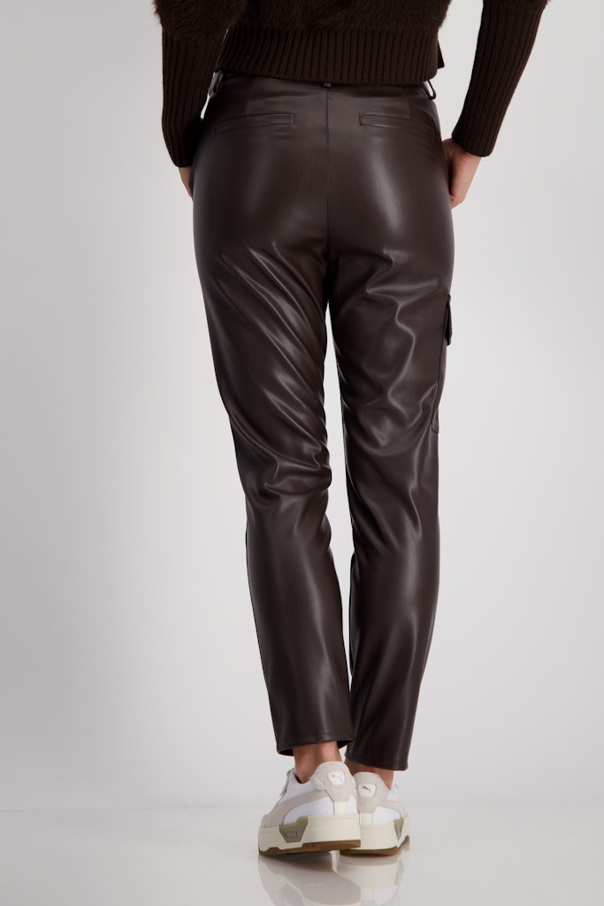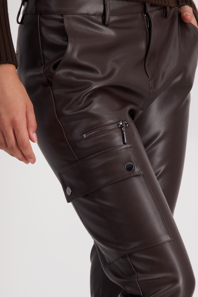 Die Lederimitat-Hose in Röhrenform besticht durch ihre praktischen Eingrifftaschen und die stylischen Pattentaschen mit Druckknopf.