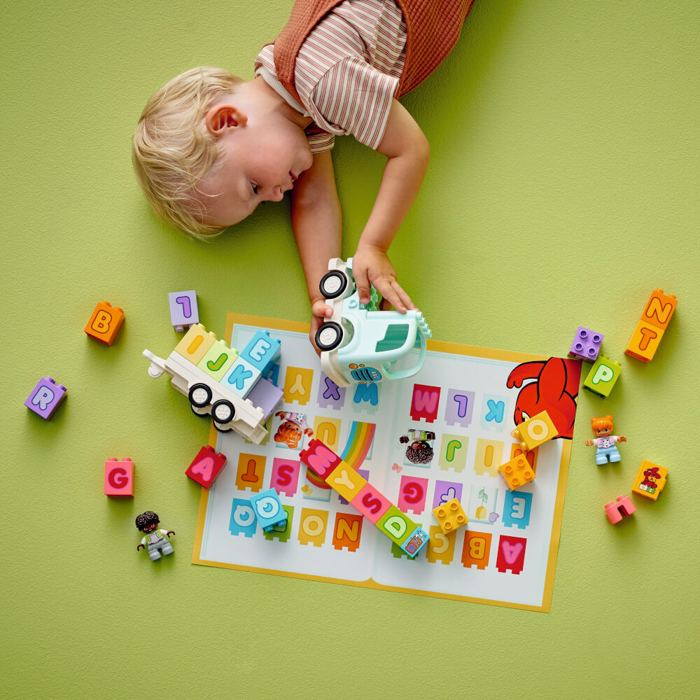 Montessori-Spielzeug, das Kleinkindern die Buchstaben beibringt: Der LEGO DUPLO Town ABC-Lastwagen lässt Vorschulkinder ab 2 Jahren bei einem lustigen Rollenspiel das ABC lernen