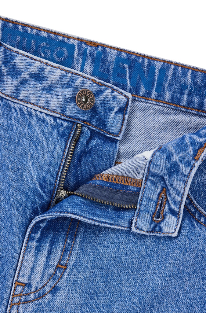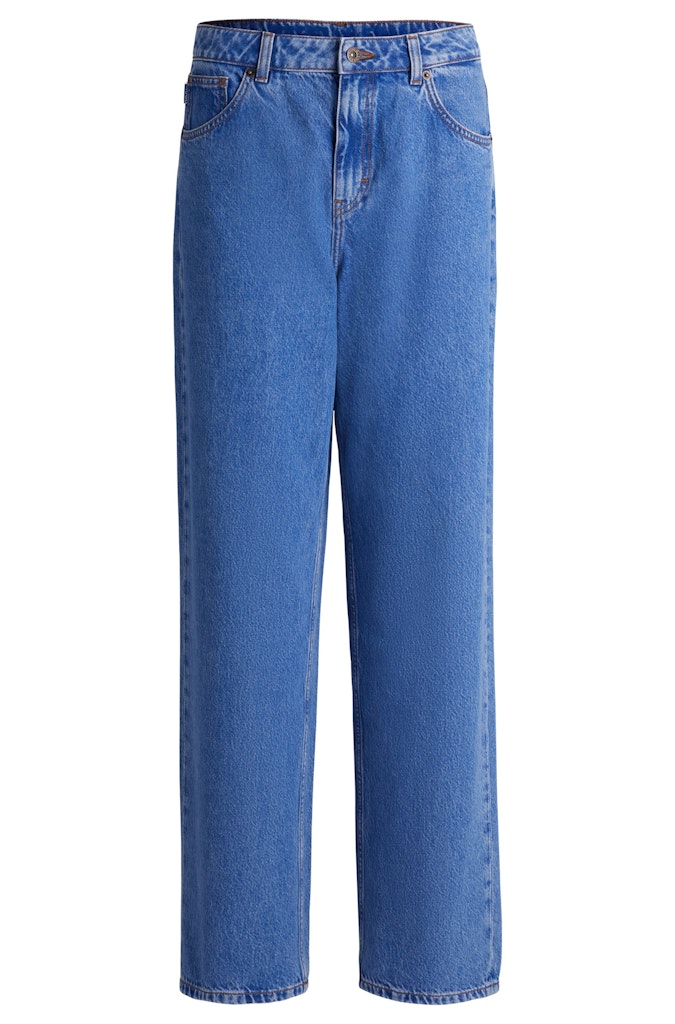 Hellblaue HUGO Jeans mit lockerer Passform und weitem Beinverlauf. Die Hose ist aus schwerem Baumwoll-Denim mit Stone-washed-Finish gefertigt.
