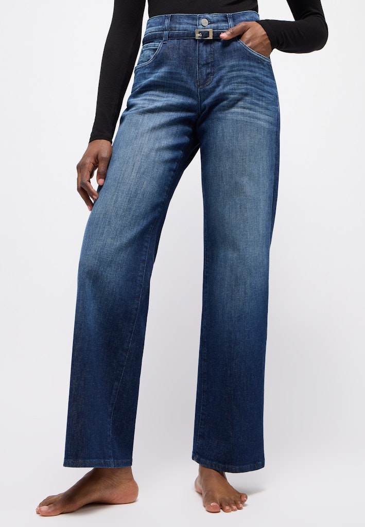 Erlebe den entspannten und modischen Stil der Angels Jeans Liz Belt mit ihrem Relaxed Fit und weitem Bein. Diese Jeans hat moderne Details, wie den integrierten Gürtel. Gefertigt aus hochwertigem West Coast Denim steht sie für eine authentische Waschung und bietet gleichzeitig einen angenehmen Tragekomfort.