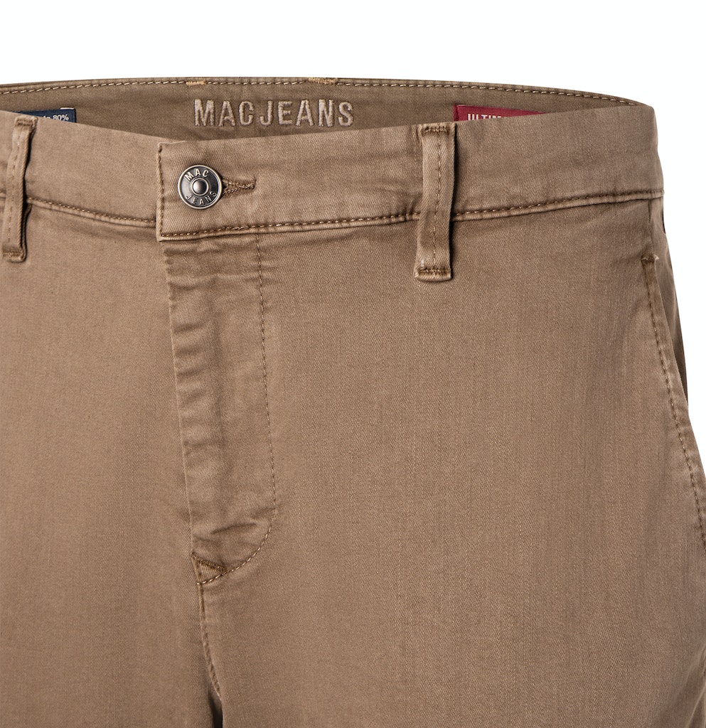 Ultimate Drivers Pants, Modern Fit, gerades, schmales Bein, Chino Design, gemäßigte, bequeme Leibhöhe, dehnbarer Bund, doppelte Gürtelschlaufen hinten für perfekten Halt, vorne tiefer und hinten höher geschnitten, Safety Pocket, MACFLEXX Denim mit hoher Elastizität von bis zu 80 Prozent, hoher Tragekomfort, hohe Formstabilität, ideal für lange Autofahrten geeignet, atmungsaktiv, sportive Optik, über Better Cotton gesourcte Baumwolle, Das Model ist 1,85m groß und trägt die MAC Bundweite 33 und Länge 32, Fußweite bei Größe 33: 34cm