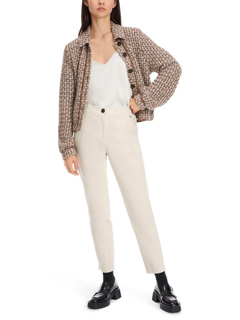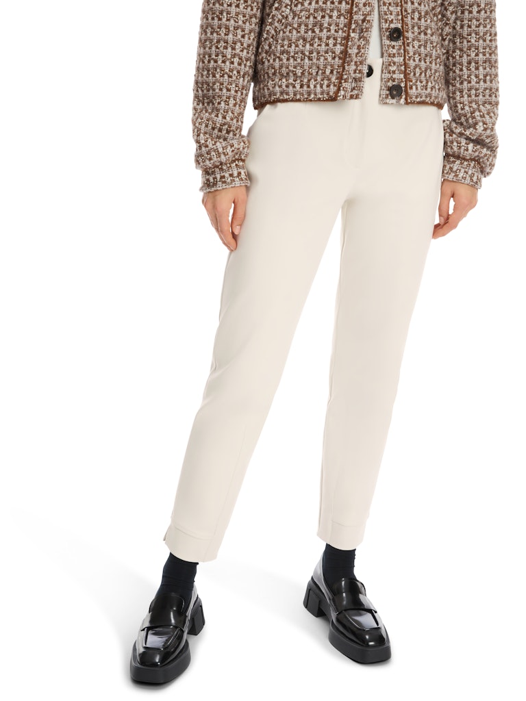 Modell SPLIT mit geschlitztem Saumbund|Sportiv präsentiert die knöchellange Hose SPLIT einen Saumbund mit Schlitz. Sie kommt im Slim Fit Design und sitzt regulär hoch. Geschlossen wird die Hose mit Zipp und Knopf. Dank der soften Materialmischung mit Baumwolle und Elasthan trägt sich die Hose den ganzen Tag über sehr bequem.|Knöchellanger Schnitt|Zipp und Knopf|Angenehmer Baumwollstretch|SPLIT - SLIM FIT - REGULAR - Beinlänge: 28"|Das Model ist 179 cm groß und trägt N3/38.