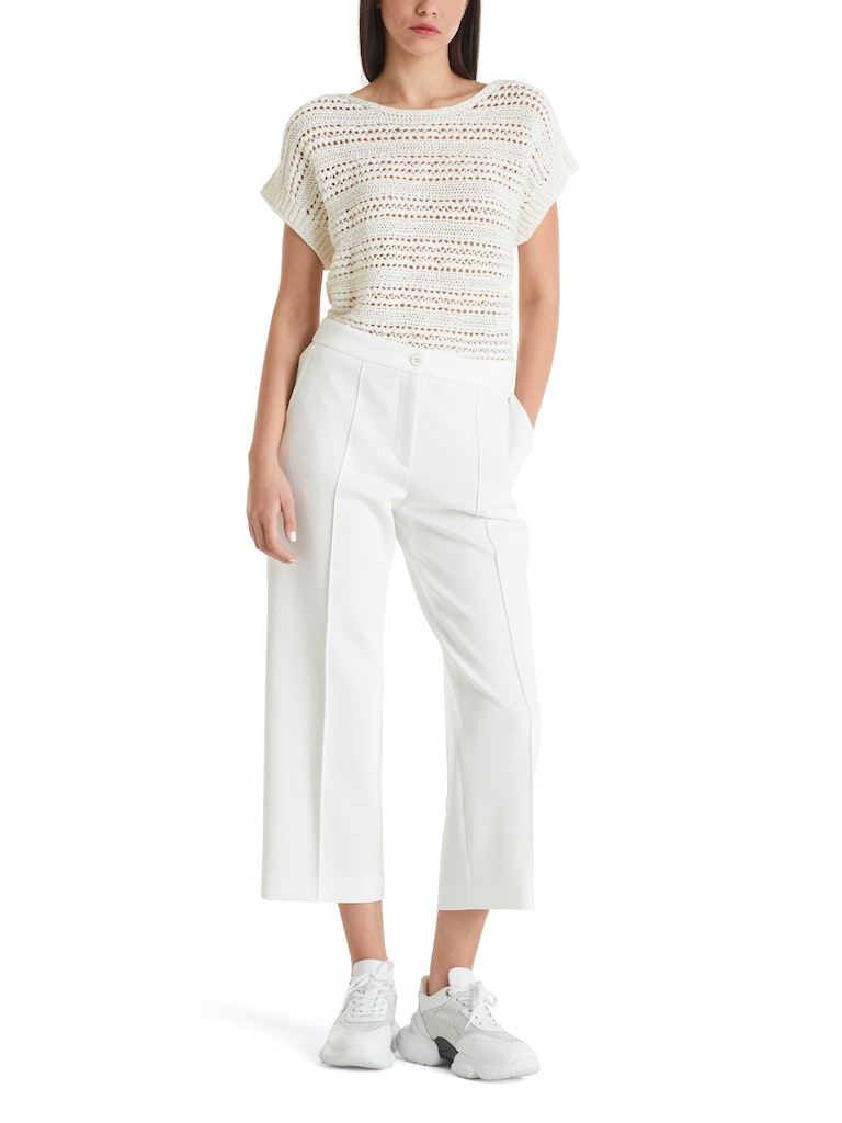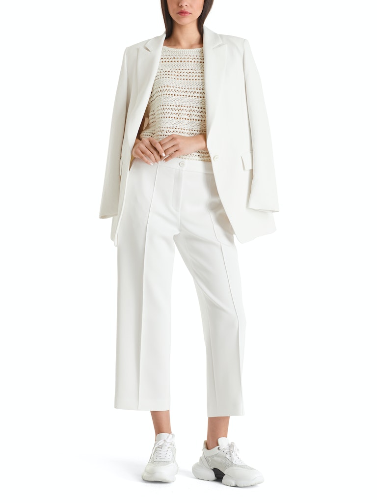 Modell WELLINGTON aus Scubajersey|Das verkürzte Modell WELLINGTON im Wide Fit ist aus superbequemem Scubajersey gefertigt für optimalen Tragekomfort. Die Hose zeigt sich mit abgesteppter Bügelfalte und Zip-Fly-Verschluss. Zwei schräg stehende Eingrifftaschen ergänzen den Style. Die weiten Beine unterstreichen den modernen Look.|Weites Bein|Abgesteppte Bügelfalten|Made in Europe|WELLINGTON - WIDE FIT - REGULAR - Beinlänge: 27"|Das Model ist 179 cm groß und trägt N3/38.