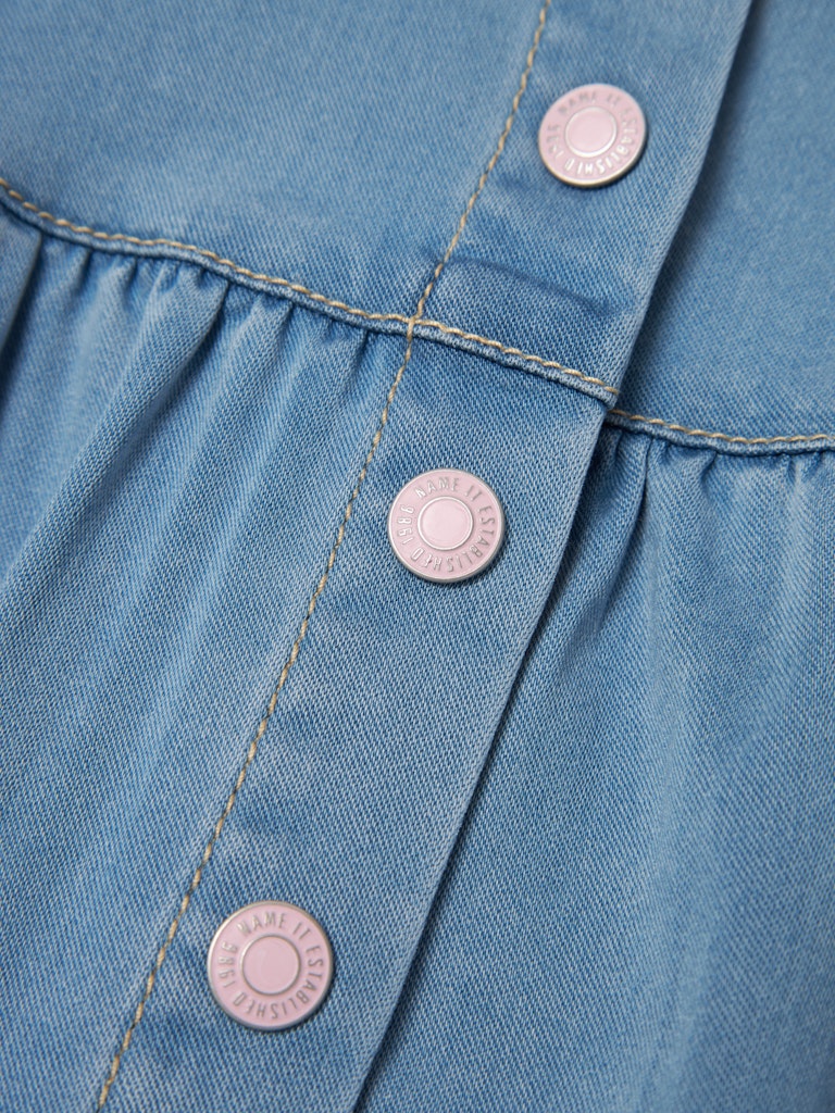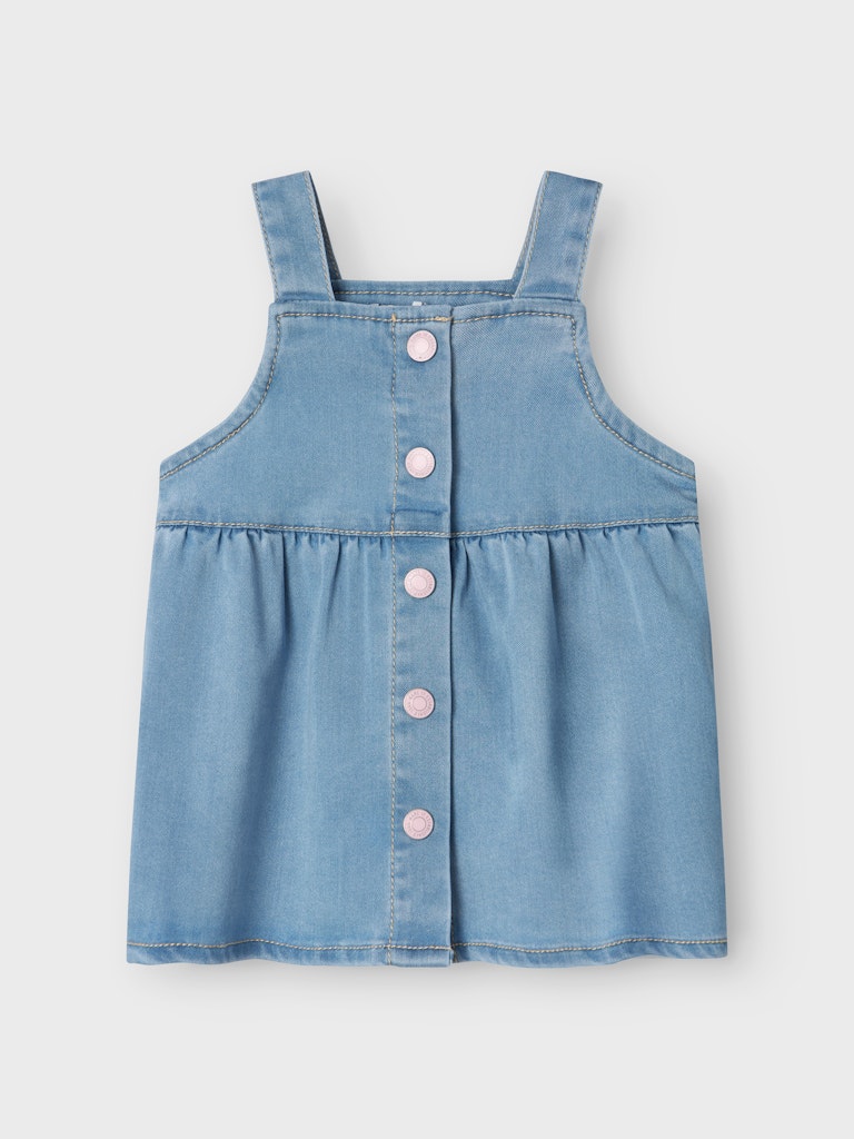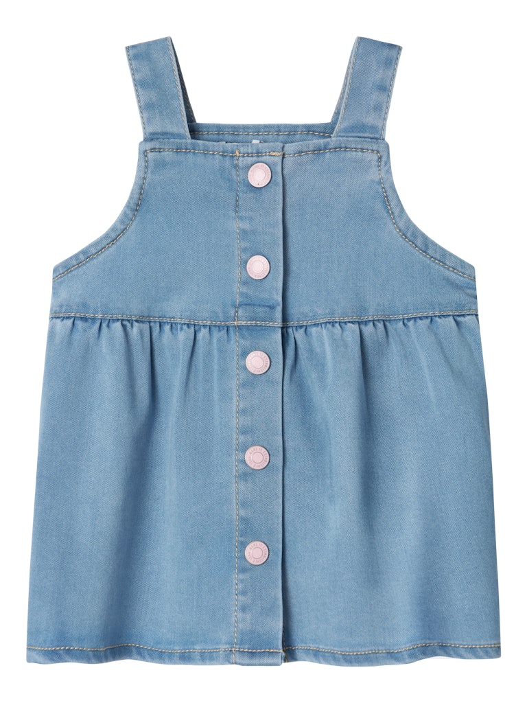 Bringe neues Leben in die Garderobe deines Kindes mit hübschen und coolen Kleidern für jede Saison und jeden Anlass. Denim ist ein robuster Webstoff, der in vielen verschiedenen Designs erhältlich ist und einen einzigartigen Look schafft.- Produktart: Trägerkleid- Verschluss : Druckknopfverschluss- Ausschnitt : Karreeausschnitt- Ärmel : Ärmellos- Träger : Schulterträger- Weitere Details: Elastischer Bund- Wash/Finish : Leichte Abnutzungserscheinungen- Passform : Standard Fit- Achtung : WARNHINWEIS! Von Feuer fernhalten