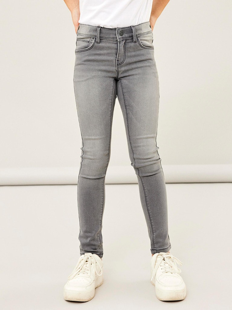 Finde die perfekte Jeans und überrasche dein Kind mit zeitlosen Styles, die einen coolen Look und jede Menge Bewegungsfreiheit bieten. Denim ist ein robuster Webstoff, der in vielen verschiedenen Designs erhältlich ist und einen einzigartigen Look schafft.- Detailart : Skinny Fit Jeans- Stoff : Denim- Waist/Rise : Regular Waist- Finish : Used-Optik für mehr Charakter- Verschluss/Hosenschlitz : Haken- und Reißverschluss- Weitere Details :- - Verstellbarer Bund- - Nieten- Tasche sonstige : Front- und Gesäßtaschen- PASSFORM : Polly ist eine Jeans mit Skinny Fit