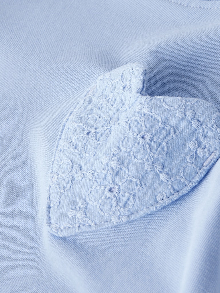 Aktualisiere die Garderobe deines Kindes mit coolen Oberteilen, die perfekt für den Alltag und besondere Anlässe sind. Jersey ist ein leichter und dehnbarer Stoff mit einer weichen Außen- und Innenseite und sorgt für ein angenehmes Tragegefühl und Bewegungsfreiheit.- Detailart : Oberteil- Ausschnitt : Rundhalsausschnitt- Ärmel : Kurze Ärmel (S/S)- Taschen : Angedeutete Fronttaschen- Weitere Details : Gewebte Details- Passform : Regular Fit