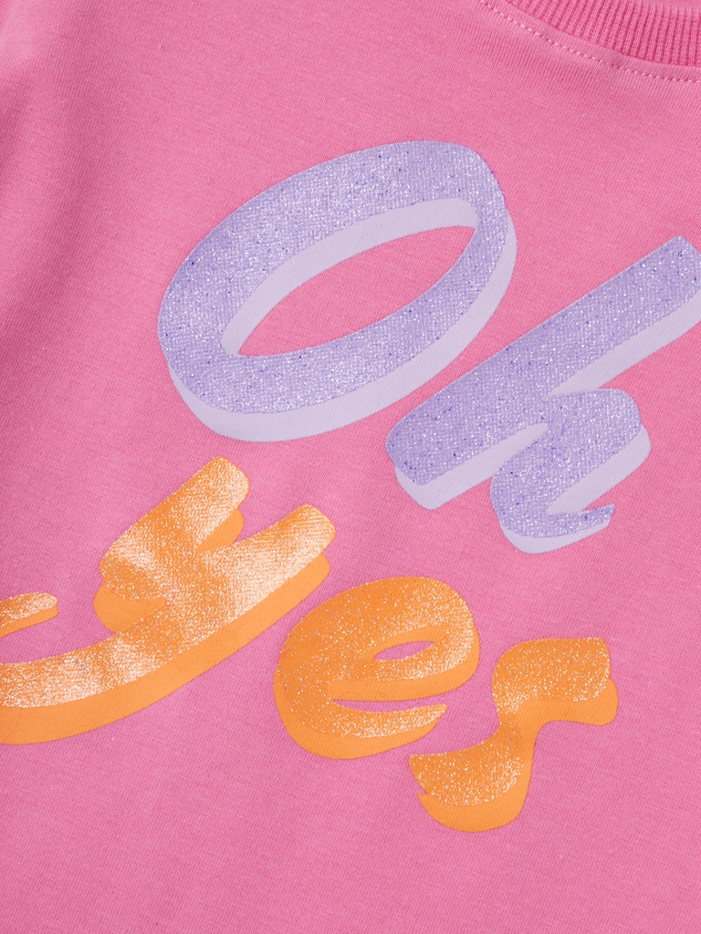 Aktualisiere die Garderobe deines Kindes mit coolen Oberteilen, die perfekt für den Alltag und besondere Anlässe sind. Jersey ist ein leichter und dehnbarer Stoff mit einer weichen Außen- und Innenseite und sorgt für ein angenehmes Tragegefühl und Bewegungsfreiheit.- Produktart: T-Shirt- Ausschnitt: Rundhalsausschnitt- Ärmel: Kurze Ärmel- Weitere Details: Glitzer- Passform: Regular Fit