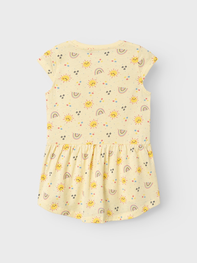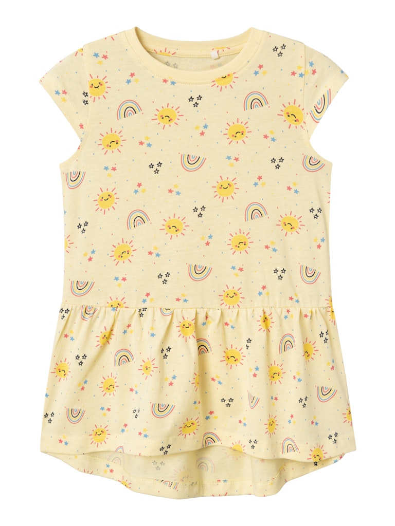 Bring neues Leben in die Garderobe deines Kindes mit hübschen und coolen Kleidern für jede Saison und jeden Anlass. Jersey ist ein leichter und dehnbarer Stoff mit einer weichen Außen- und Innenseite und sorgt für ein angenehmes Tragegefühl und Bewegungsfreiheit.- Detailart: Kleid- Stoff: Jersey- Länge/Größe: Hinten länger als vorne- Printart: Print wiederholt sich auf dem ganzen Stoff- PASSFORM: Regular Fit- AUSSCHNITT: Rundhalsausschnitt- ÄRMEL: Kurze Ärmel (S/S)