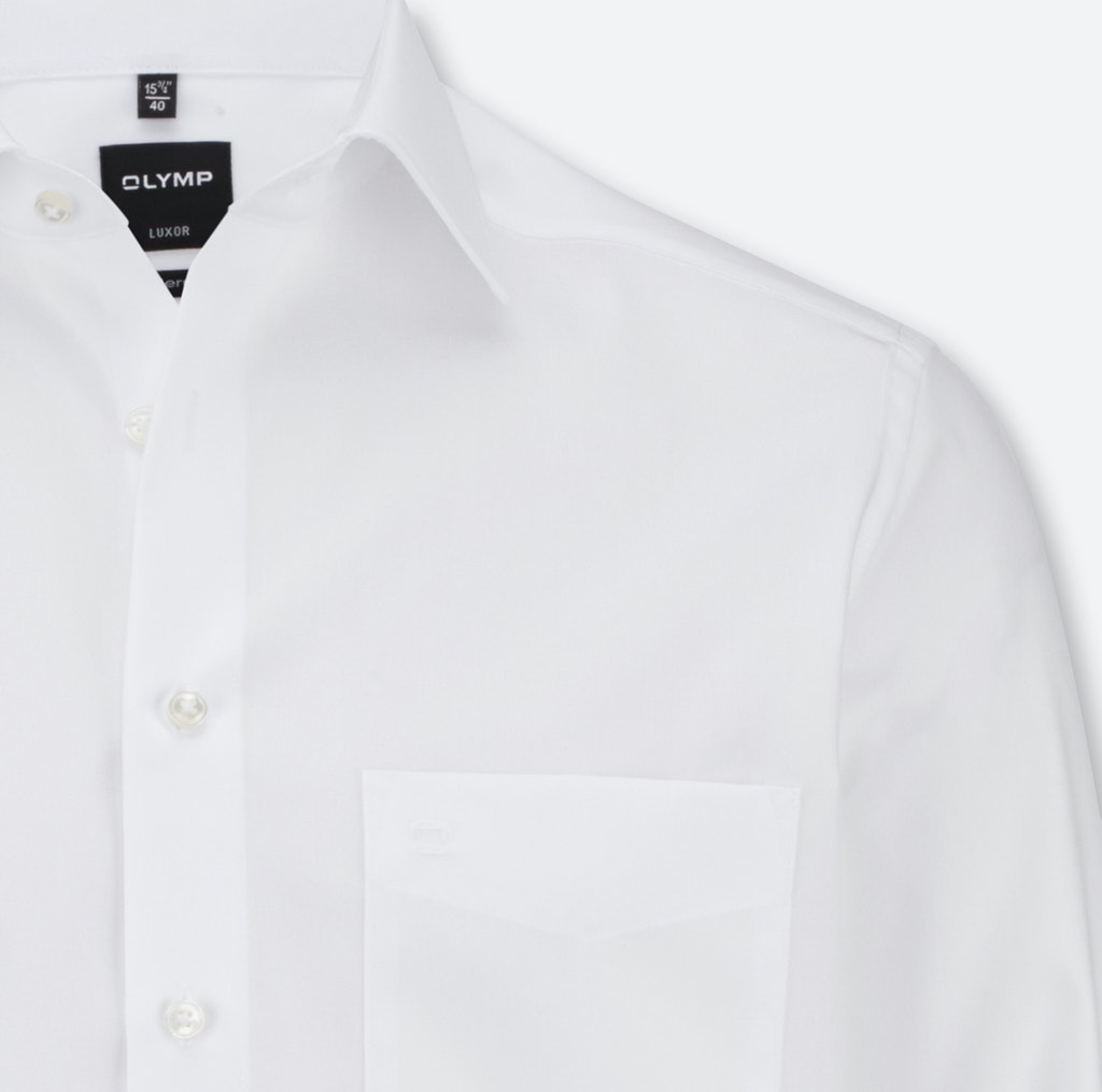 Mehr Souveränität durch faltenfreien Auftritt: Das exklusive Businesshemd OLYMP Luxor modern fit mit grenzenloser bügel- und Knitterfreiheit. Auch bei hitzigen Debatten angenehmer Tragekomfort dank atmungsaktiver und hautsympathischer Stoffe. Der unifarbene Oberstoff in Weiß mit elegantem New-Kent-Kragen sowie verstellbaren Kombimanschetten machen dieses Hemd vielseitig kombinierbar und zeitlos schick. <