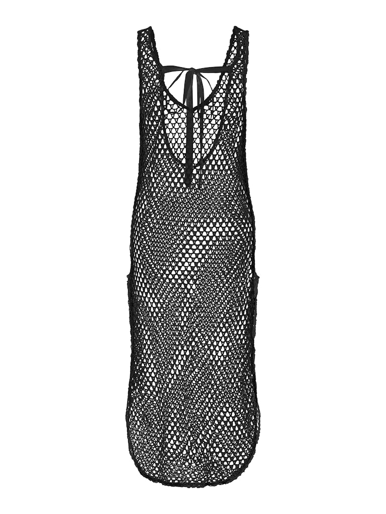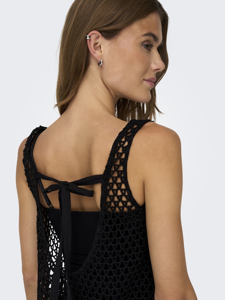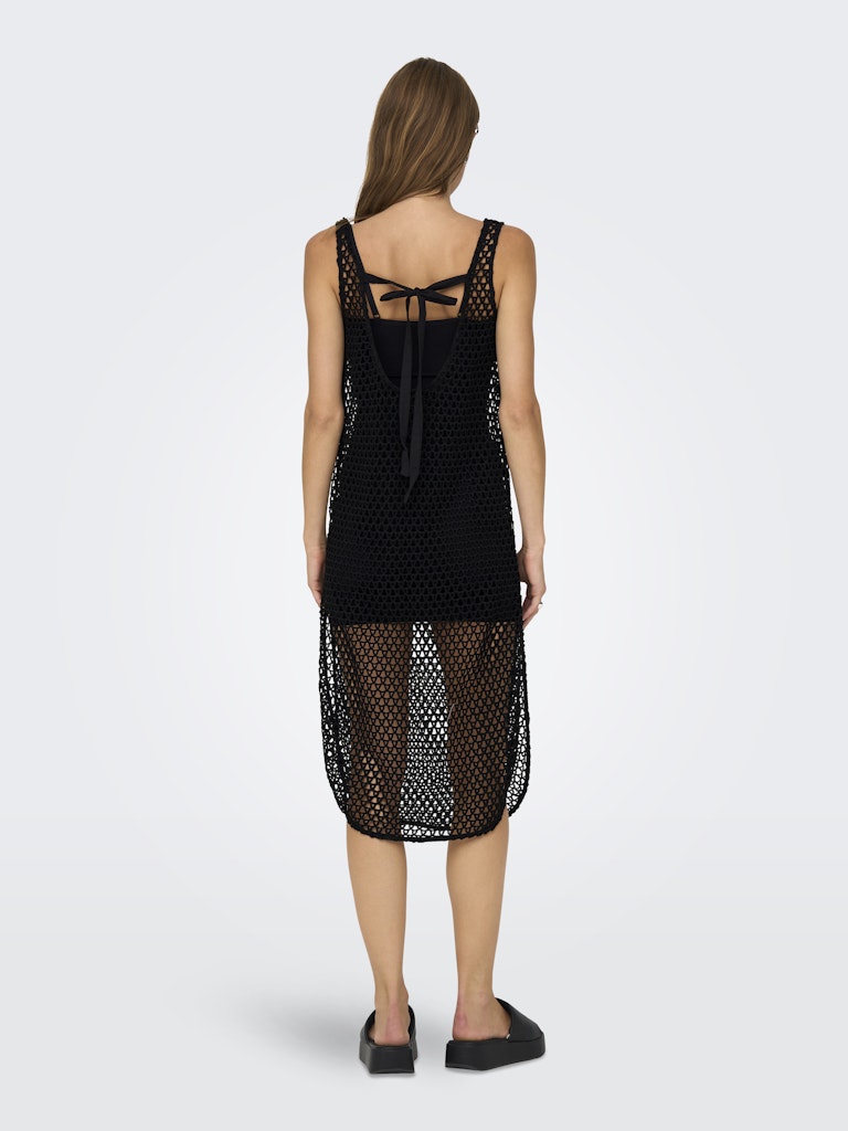 - Produkttyp : Strickkleid - Neck : Rundhals - Ärmel : Ohne Ärmel - Länge/Größe : Über dem Knie - Details : Kordelzug - Passform : Locker geschnitten
