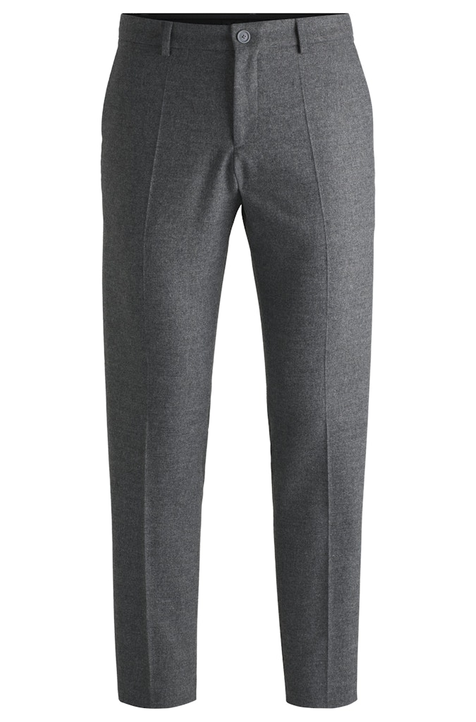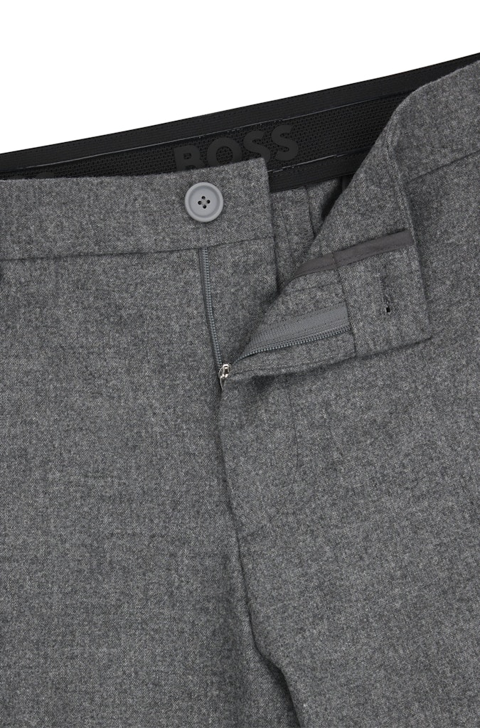 Progressive BOSS Business-Hose. Die schmal geschnittene Hose aus gebürstetem Stretch-Flanell mit Woll-Anteil hat einen besonders bequemen Bund.