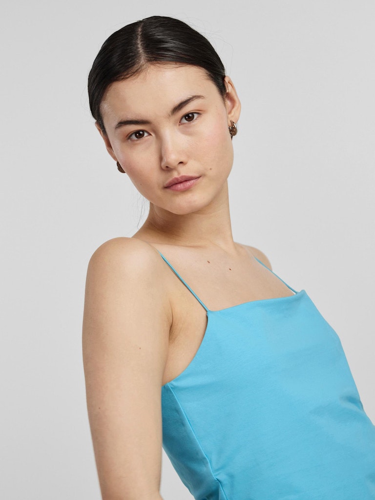 - Karreeausschnitt an Vorder- und Rückseite- Dünne Spaghettiträger- Elegantes Design- Körperbetonte Passform