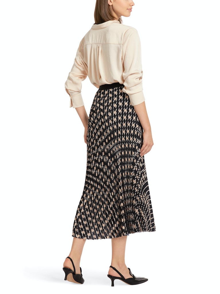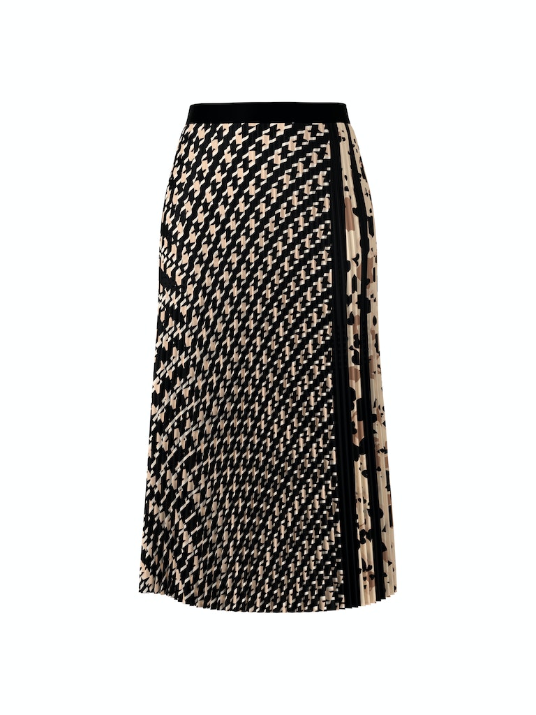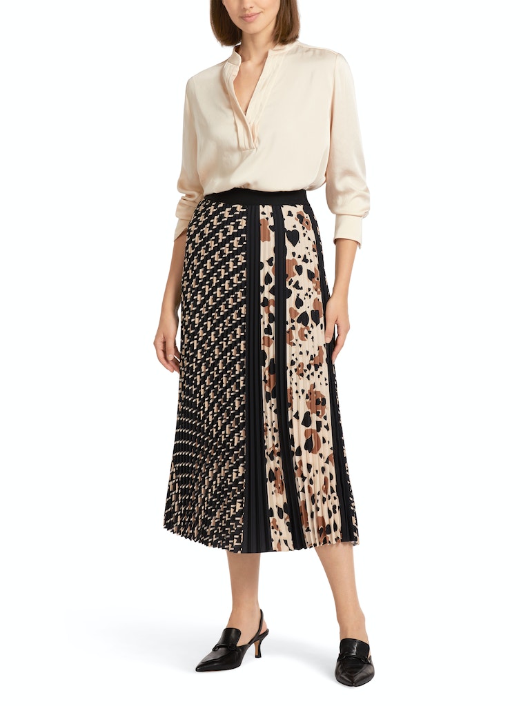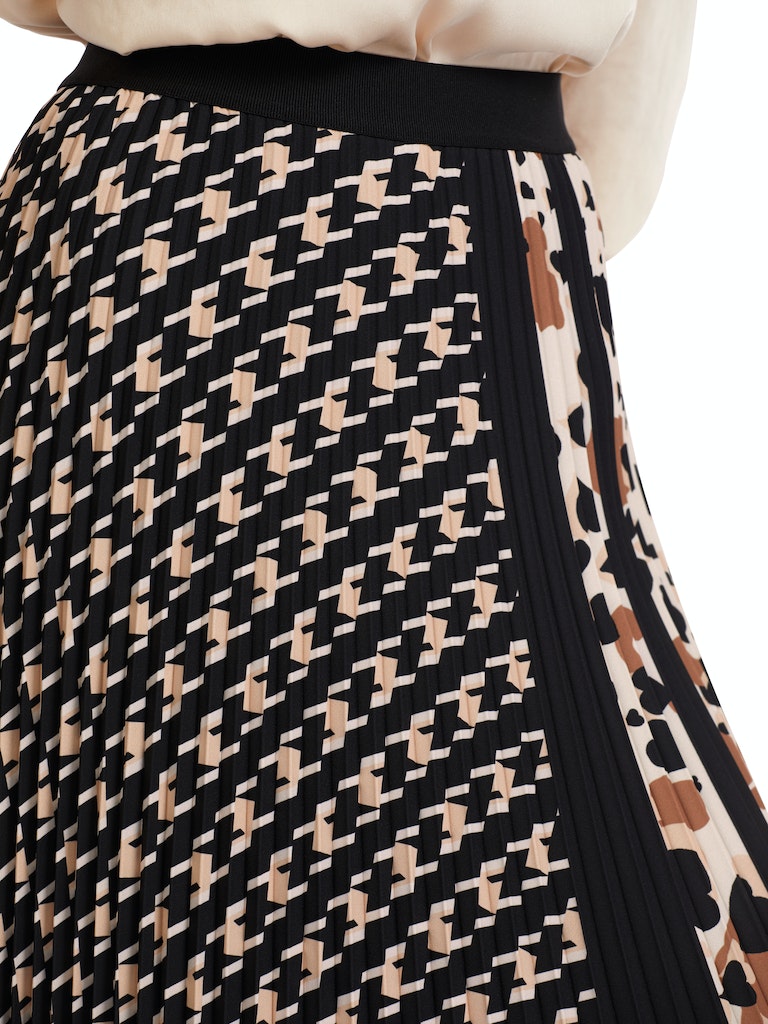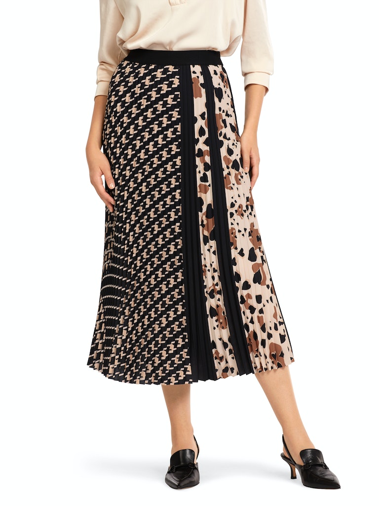 Plisseerock im Mustermix|Weit schwingender Plisseerock in Midilänge. Dieser leichte Plisseerock kommt mit einem eindrucksvollen Mustermix aus Leo-, Pepita- und Streifendessin. Für angenehmen Tragekomfort ist er mit einem elastischen Strickbund sowie einem Unterrock versehen.|Farbe: black|A-Silhouette|Mustermix|Das Model ist 179 cm groß und trägt N3/38.|Elastischer Bund||||
