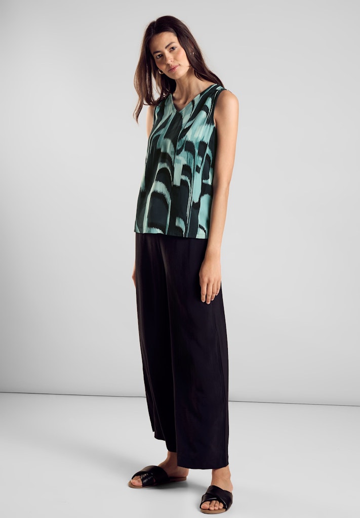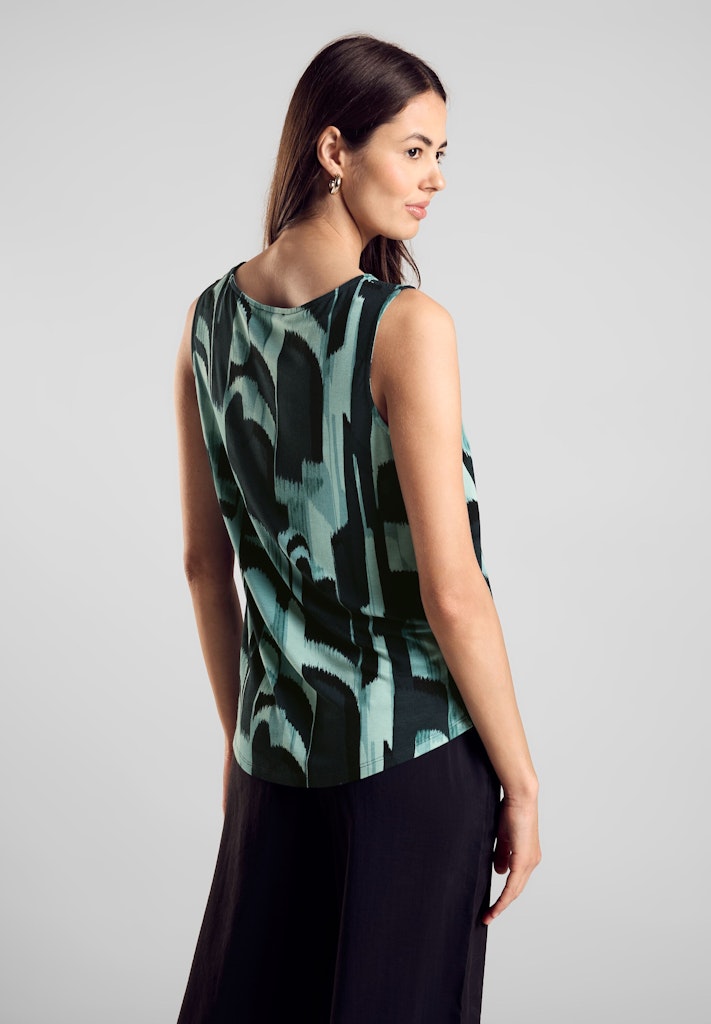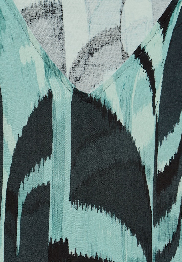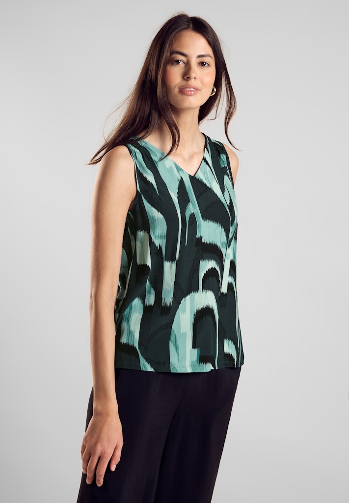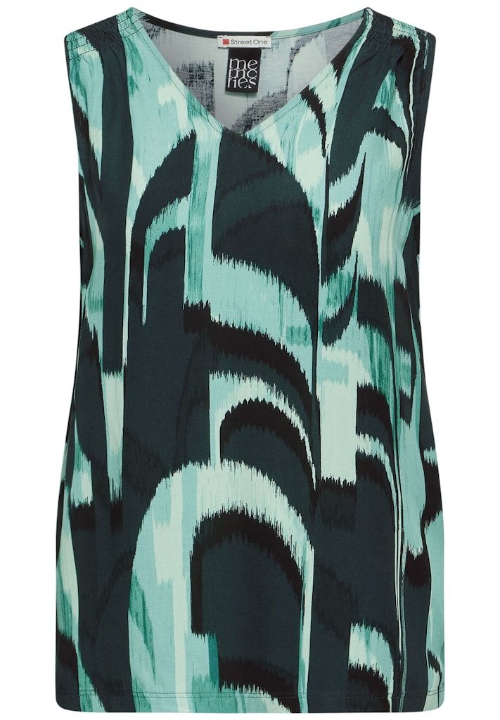 Dieses leichte Damentop von Street One mit Raffungen an der Schulter und einem V-Ausschnitt bietet einen luftigen Tragekomfort. Ideal für warme Tage, lässt es sich perfekt zu Shorts oder Röcken kombinieren. Der fließende Schnitt, das grafische Muster und die weiche Stoffqualität machen da zu einem Favoriten für den Sommer.