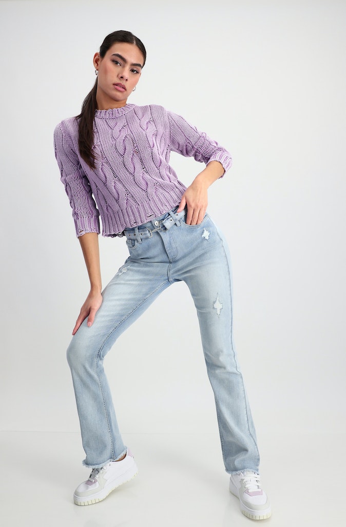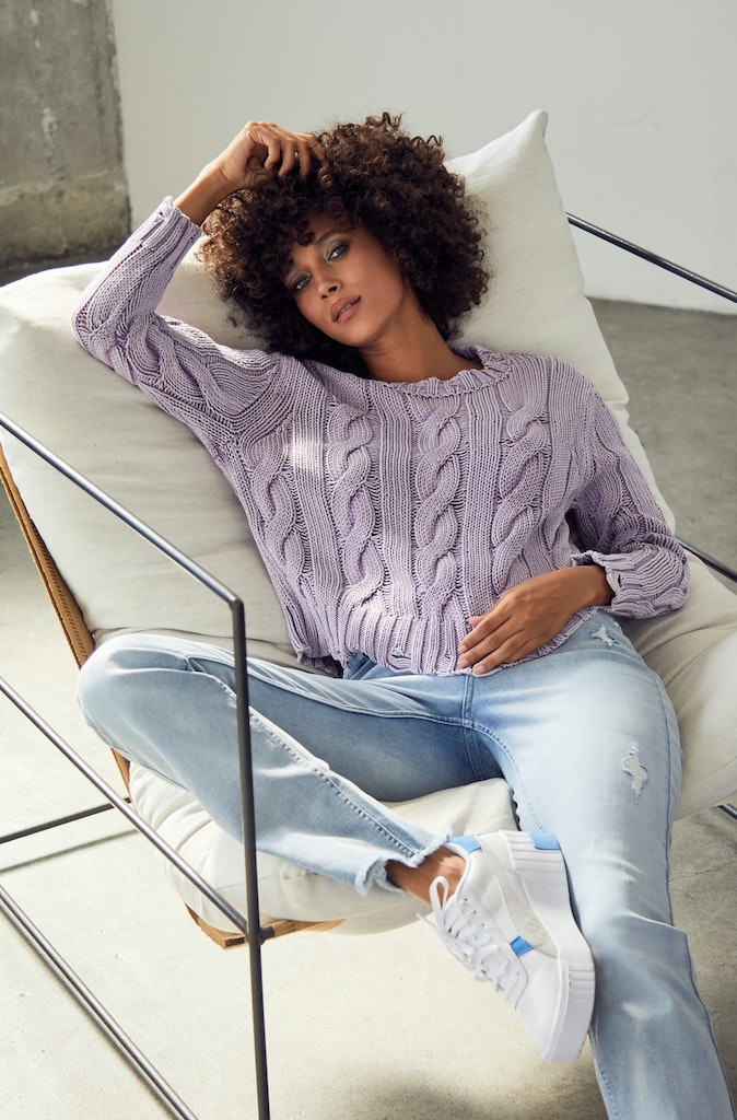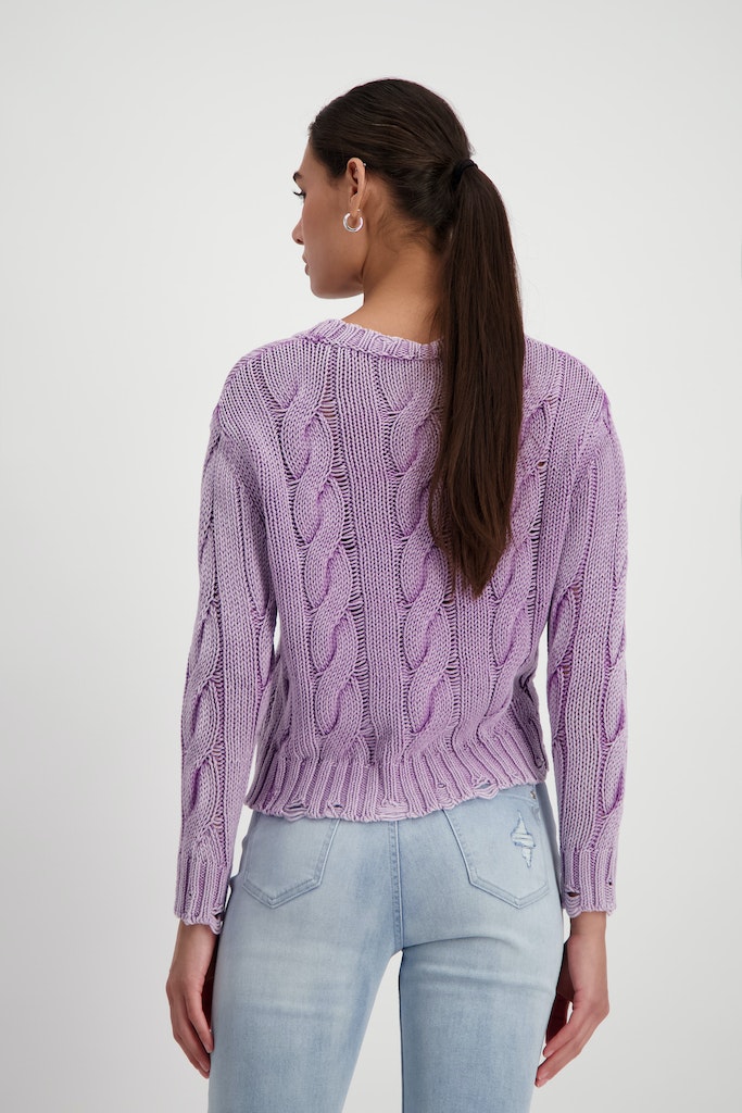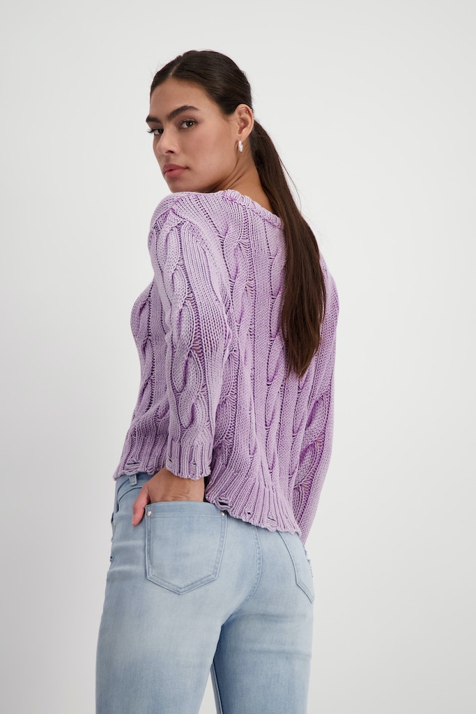 Der bequeme Pullover aus 100% Baumwolle überzeugt durch ein modisches Zopfmuster und eine Rippstruktur.