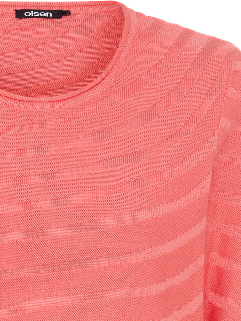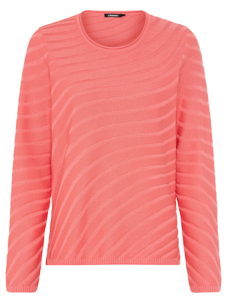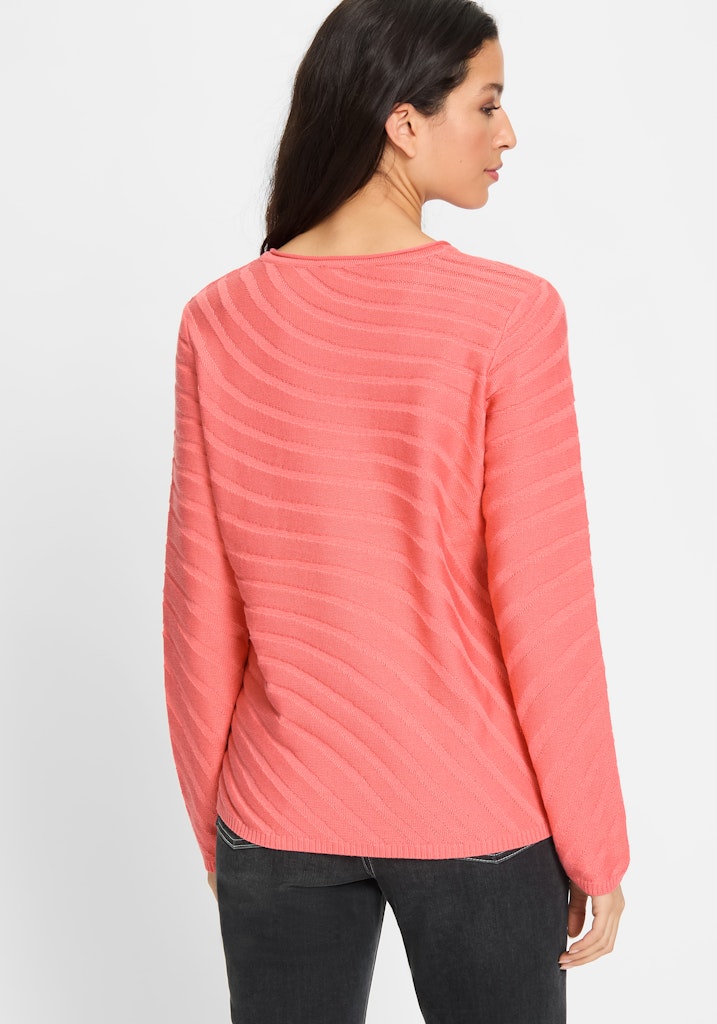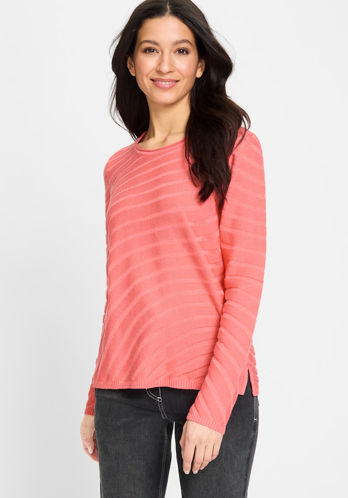Entdecken Sie diesen eleganten Pullover mit fließendem gestrickten Streifenmuster. Sein klassischer Rundhalsausschnitt, lange Ärmel und seitliche Schlitze verleihen ihm zeitlose Eleganz mit einem Hauch von Modernität. Gefertigt aus einem angenehmen Mix aus Baumwolle und Polyacryl bietet er optimalen Komfort und Stil für jede Gelegenheit. Länge ca. 60 cm.