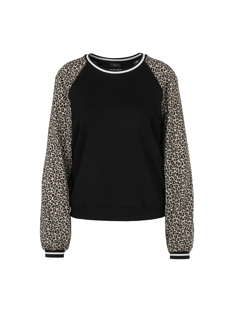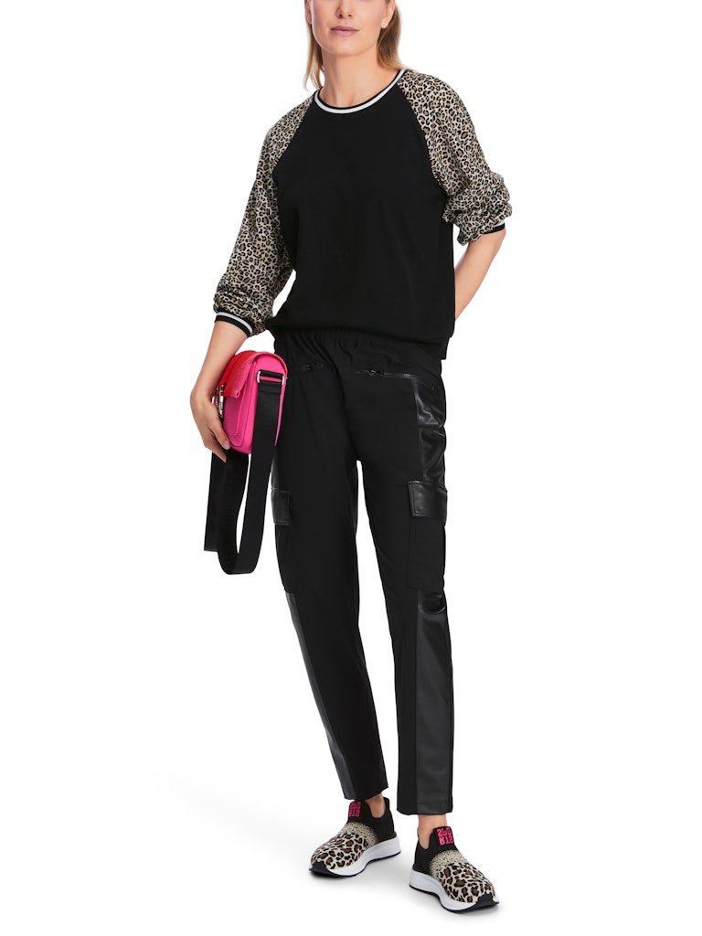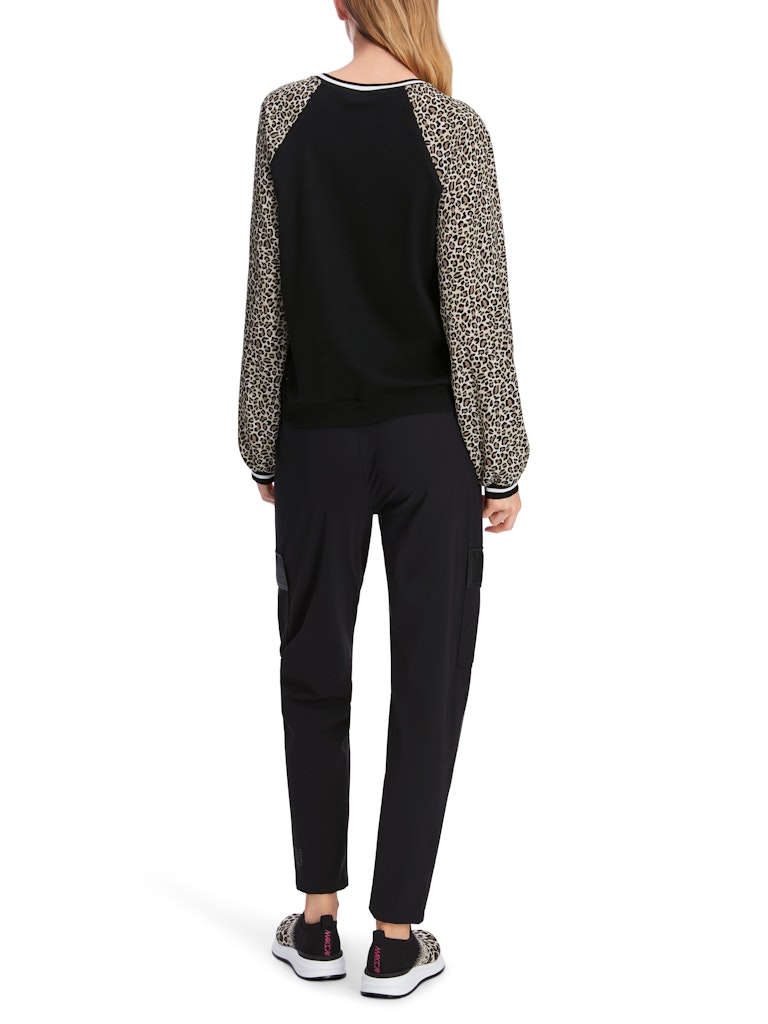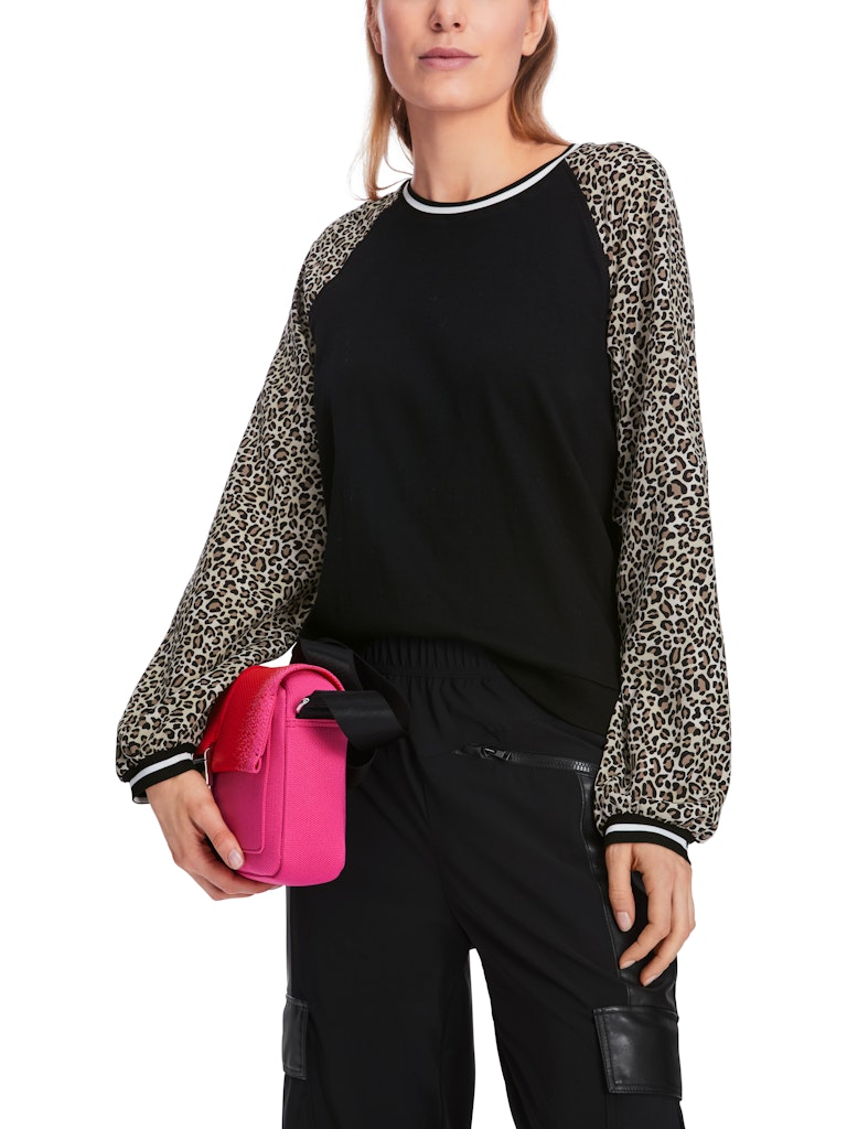 Raglan-Shirt in Materialmix|Weites Shirt mit Raglanärmeln. Der Rundhals ist tief und weit geschnitten. Effektvoll der Materialmix: Vorder- und Rückenteil sind aus Baumwoll-Ripp mit Elasthan, die Ärmel aus weichfallendem Gewebe. Lebhafter Kontrast: die Streifenbündchen an Ärmelsaum und Halsausschnitt.|Weite Form|Rundhals|Made in Europe|Materialmix|Das Model ist 179 cm groß und trägt N3/38.