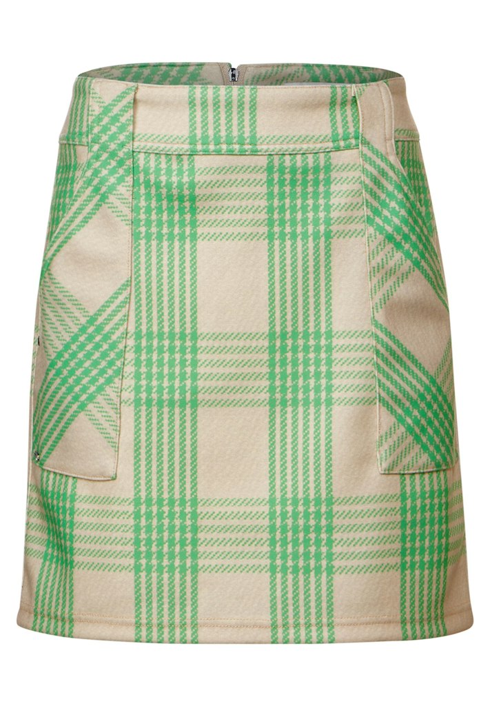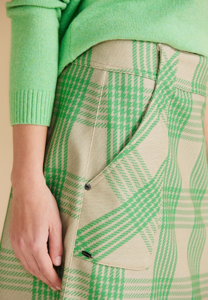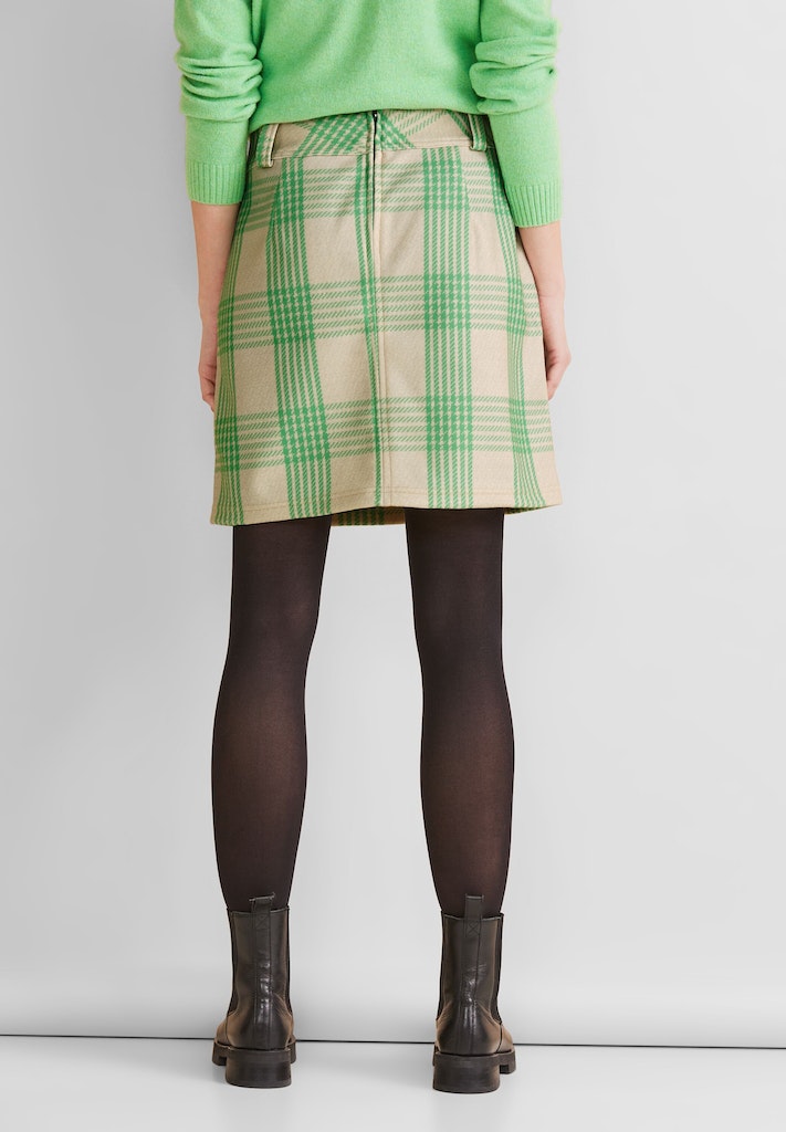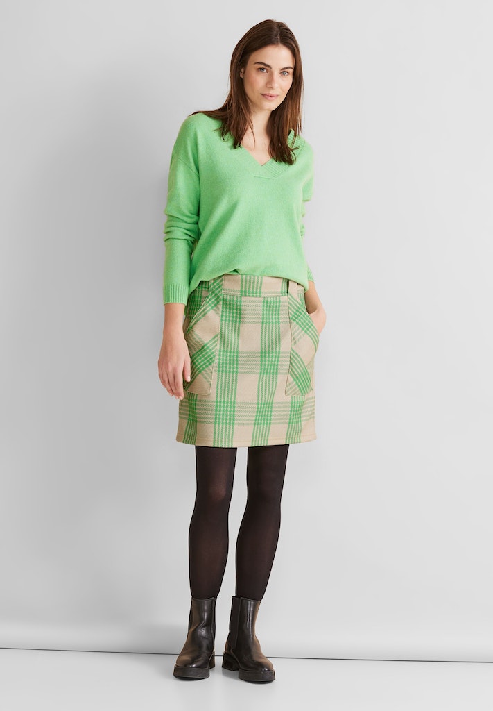 Der Rock im Style Maja von Street One ist ein vielseitiges Kleidungsstück, das deinem Outfit eine modische Note verleiht. Mit seinem Karo-Muster und den großen Taschen ist er ein echter Blickfang. Der Rock hat einen hinteren Reißverschluss und endet oberhalb des Knies, was ihn ideal für verschiedene Anlässe macht. In Woll Optik ist ein ein treuer Begeliter durch den Winter.